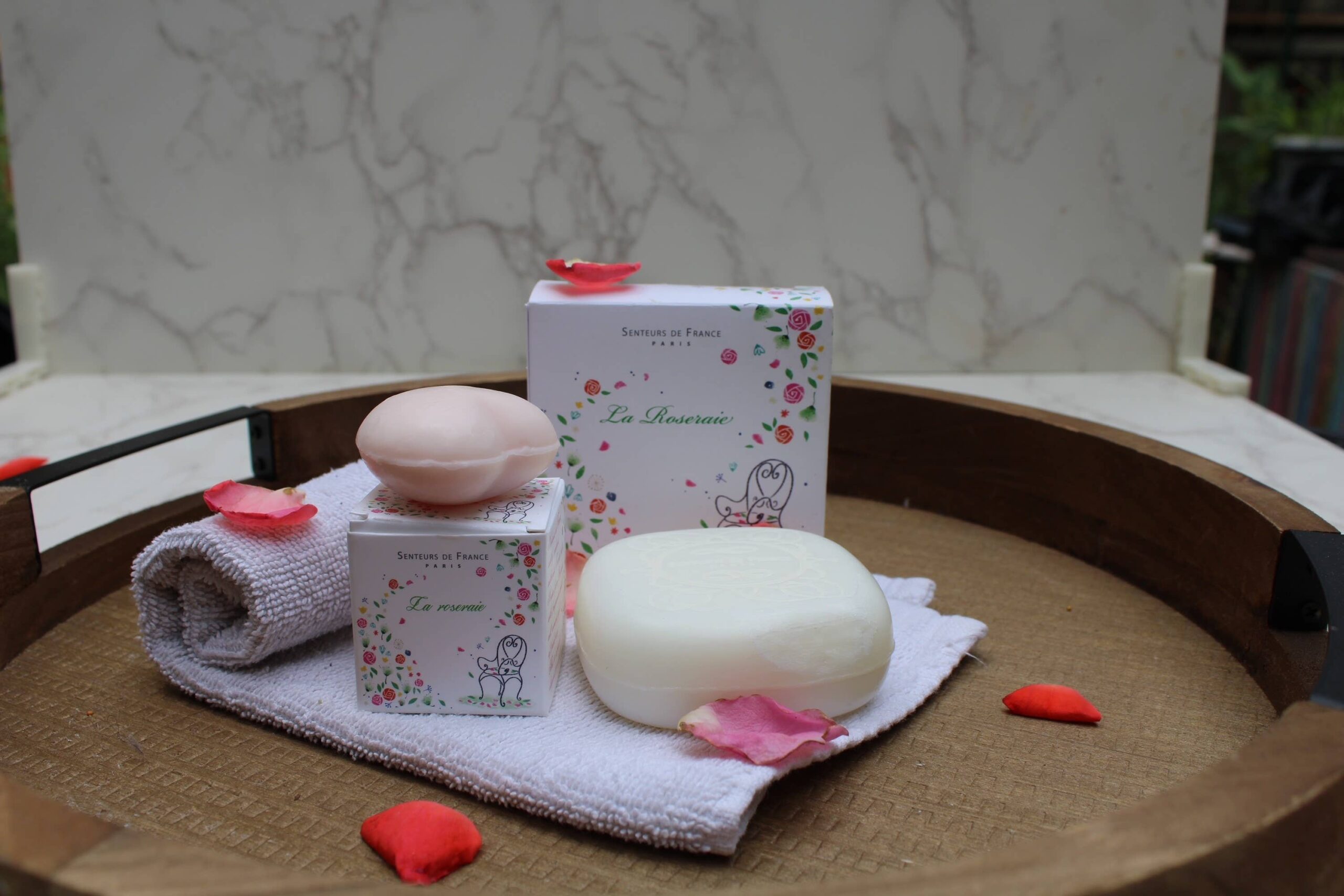 Immerse yourself in the timeless elegance of the Roseraie rose-scented soap, beautifully adorned with a delicate rose garden motif. Expertly crafted with a refined fragrance developed by a master perfumer from Grasse, this soap captures the pure, fresh essence of blooming roses with unmatched delicacy and sophistication.