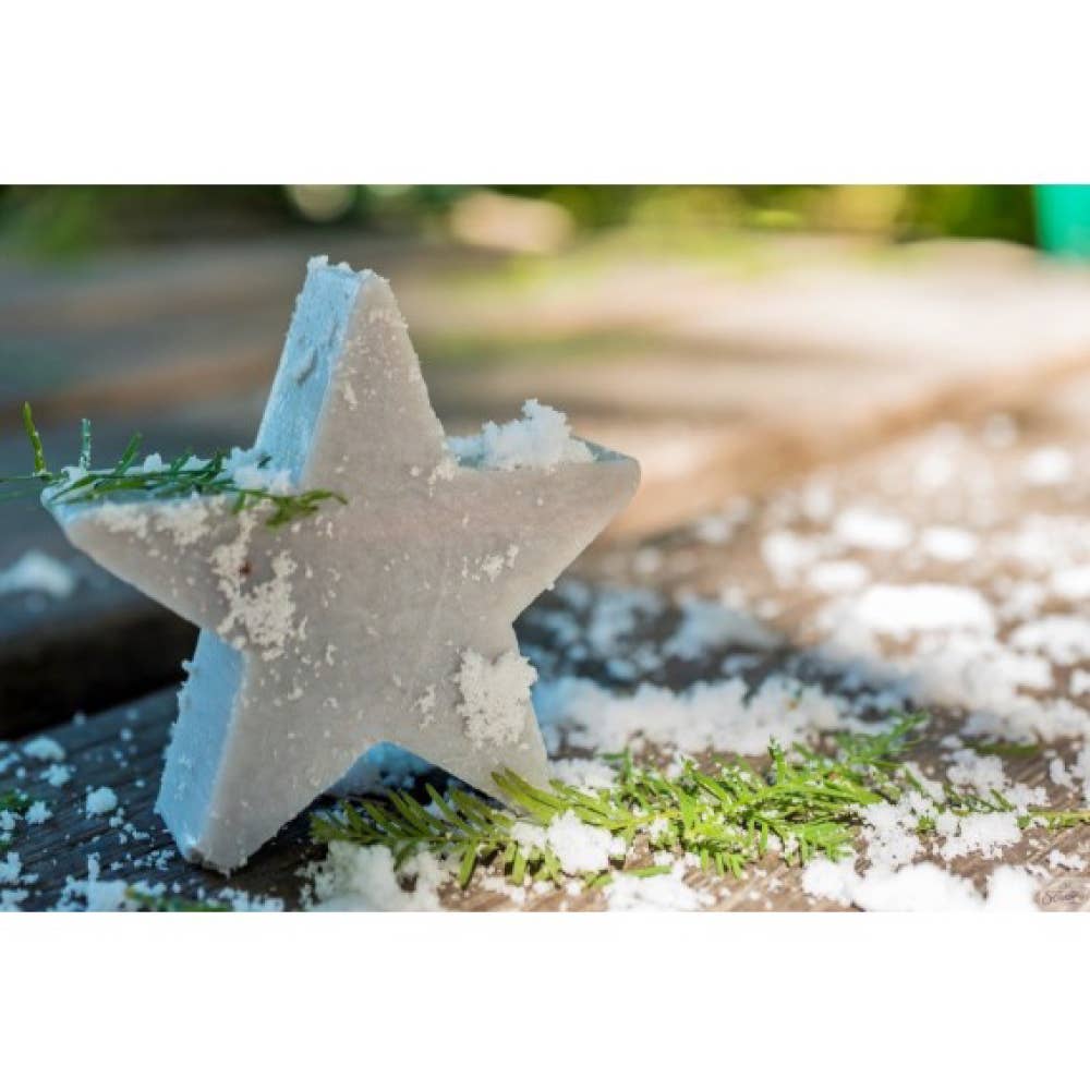 Star-shaped Christmas soap. Silvery gray, delicately scented and slightly glittery, they stand out when the soap is wet or in the light. 30 grams.
