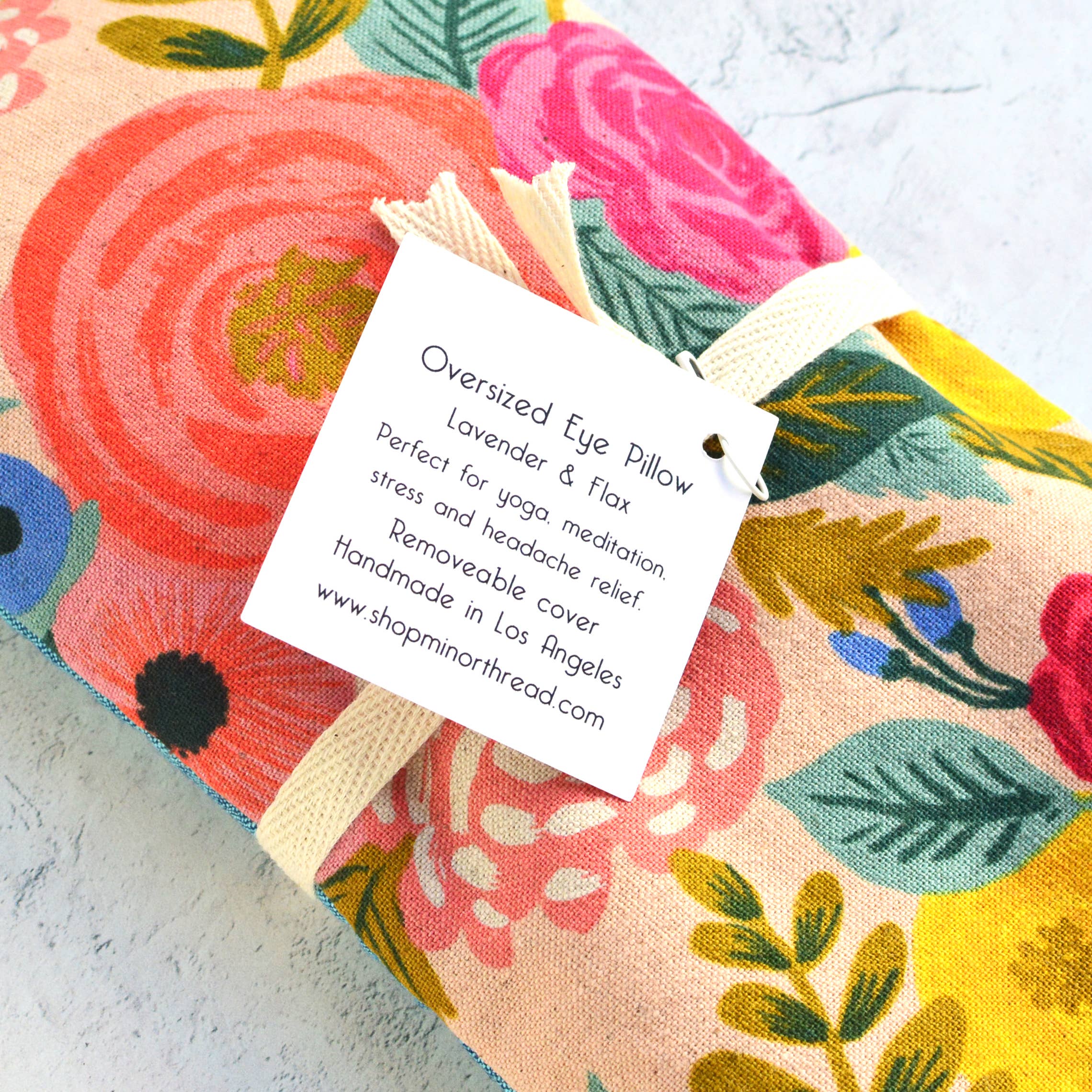 This weighted eye pillow is made with a selection of modern cotton, linen or canvas fabrics and features an inner pouch filled with flax seeds and optional mint leaf or lavender flowers. These pillows can be frozen for cooling relief or gentle microwaved for warm comfort.