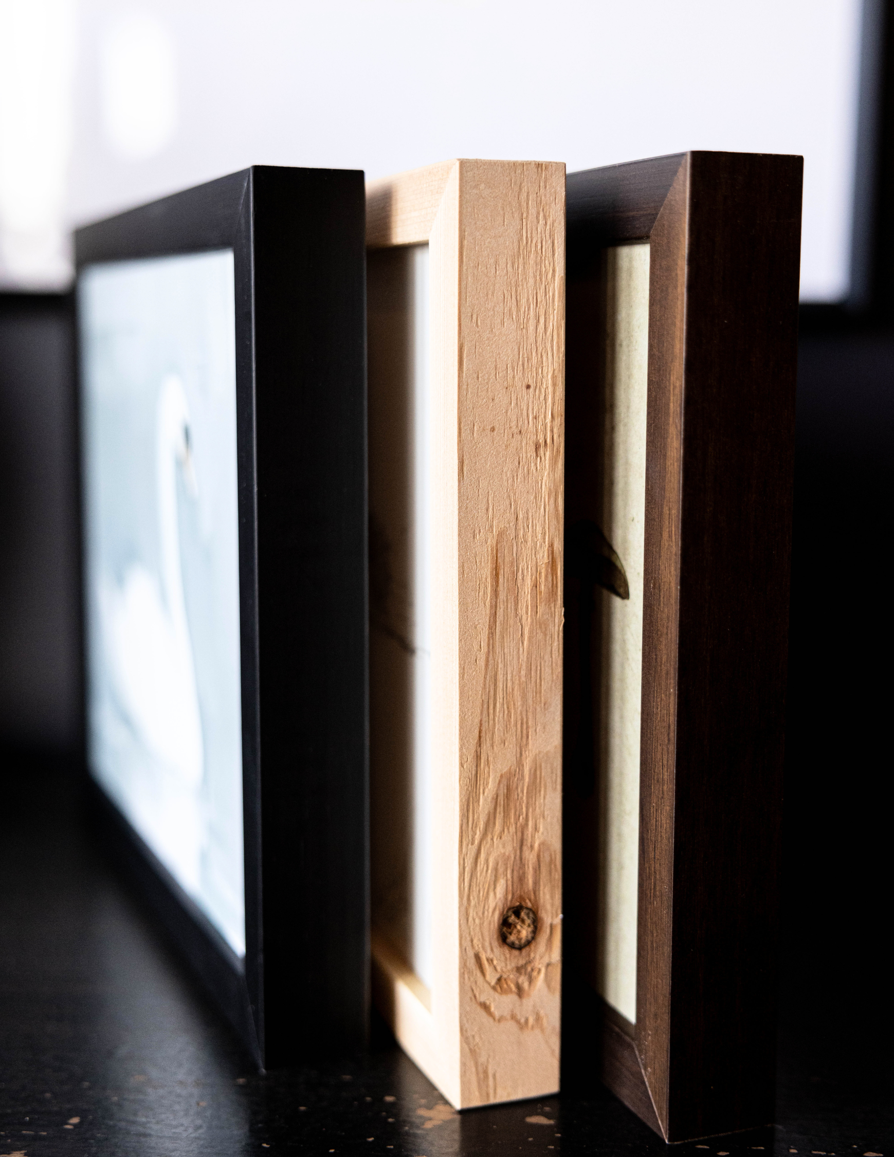The back of the frame features a raised lip for easy hanging. For maximum impact, consider using an easel for display.