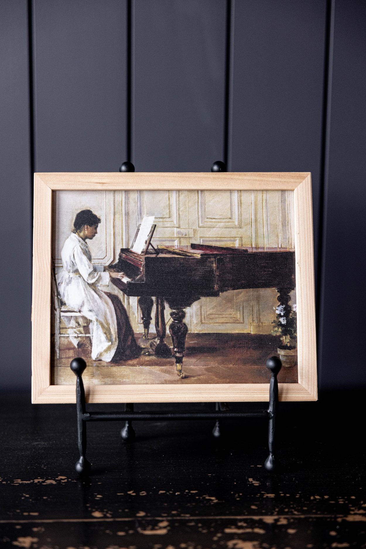Enhance your home decor with the Piano Player Pine Framed Art by Luxe B Co. This stunning piece, encased in a high-quality pine frame, enhances the aesthetic of any space. Ideal for those wanting to add an extra touch of decor to their kitchen, living room, bedroom, or shelf display. These frames pair well with Luxe B Co Art Easels.