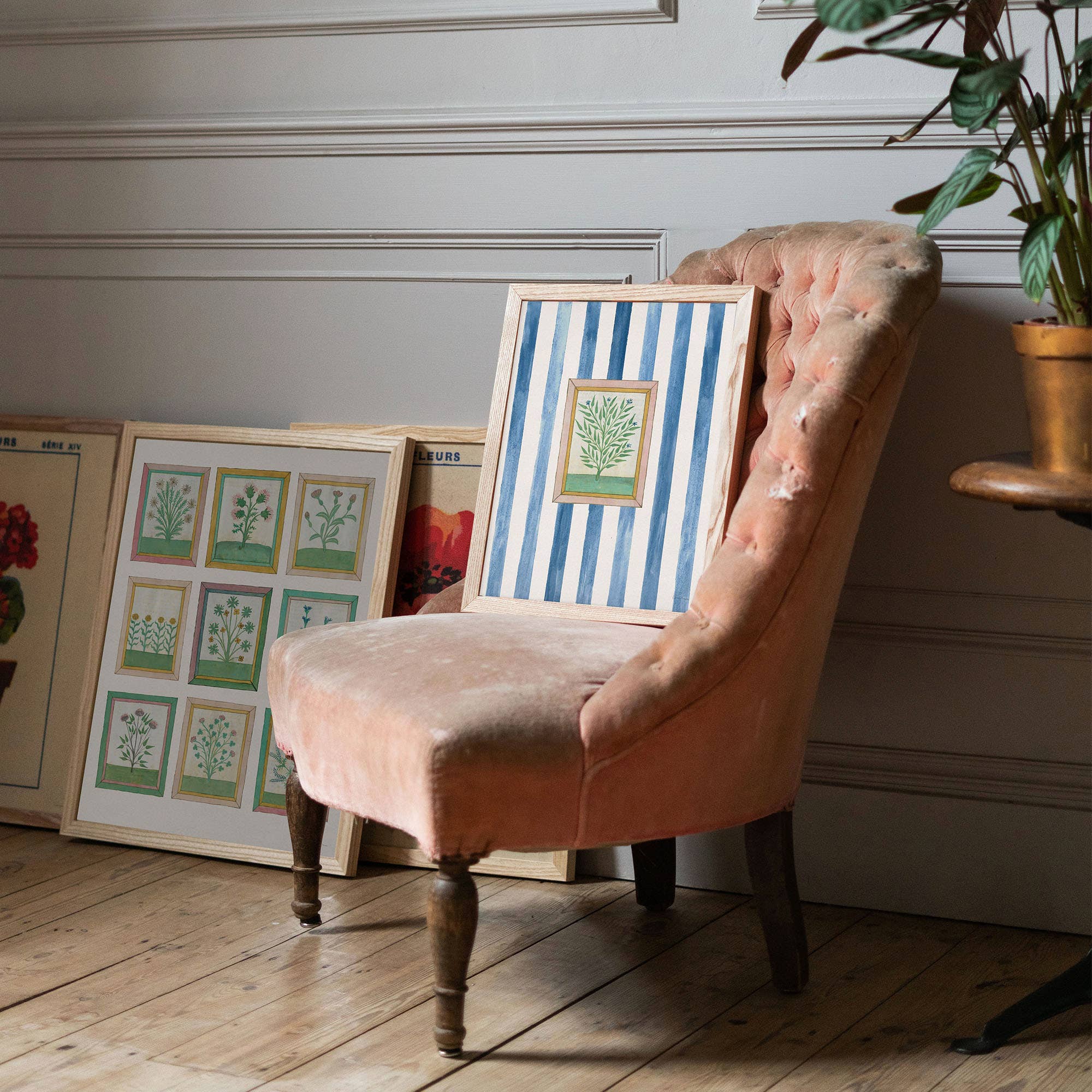 This 15th century herbs fine art print features incredible illustrations from over 500 years ago! Published in 1462, the original German book combined descriptions of 160 herbs with enchanting illustrations. Roomytown’s designers have handpicked the most captivating illustrations from this ancient gem and given them a fresh, modern twist by adding a vibrant blue stripe background in watercolour.