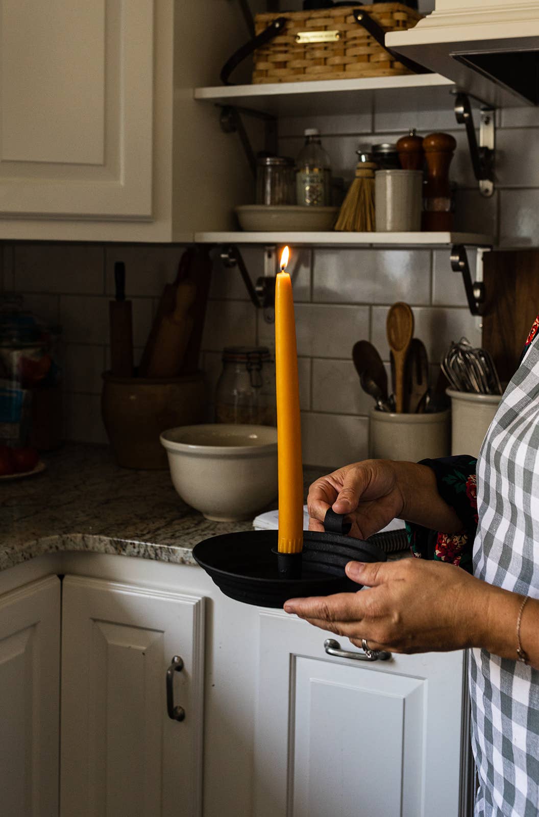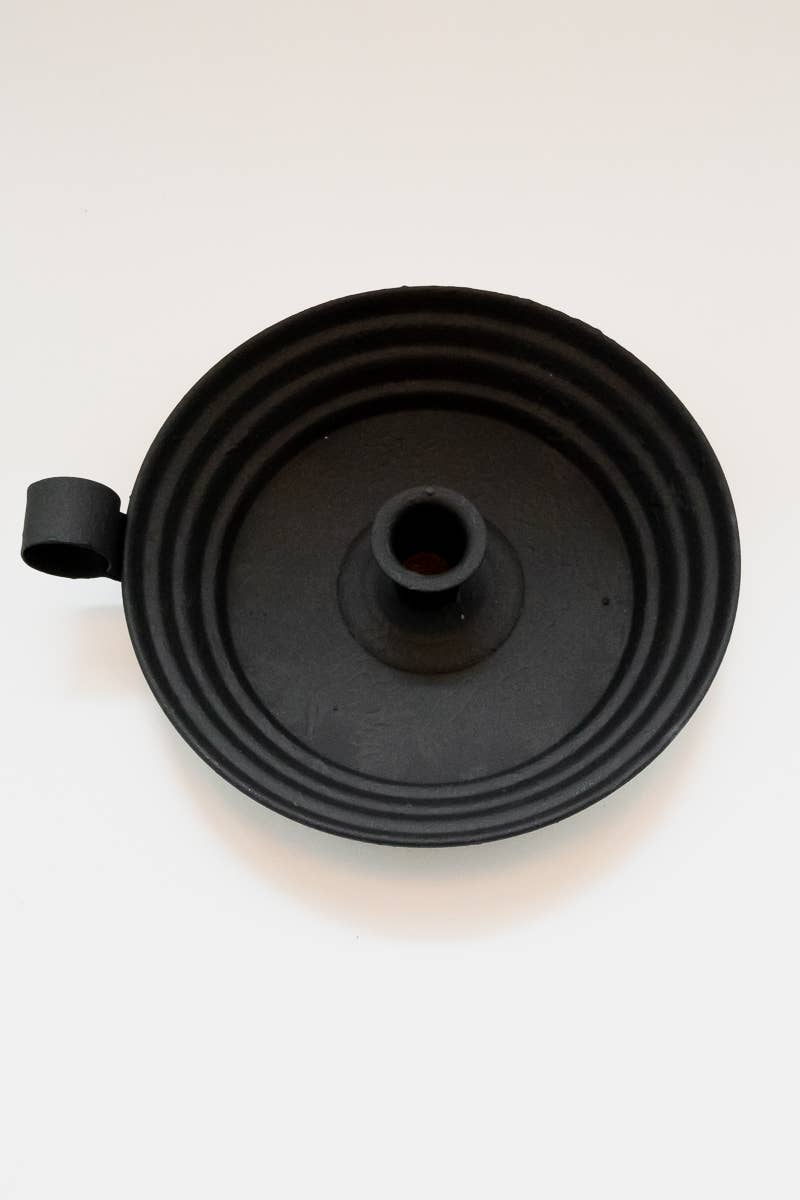 A design that has stood the test of time, this round candlestick holder fits beautifully with our hand-dipped taper candle collection. Its textured black finish complements any decor. Made in Pennsylvania with a handle for easy carrying.