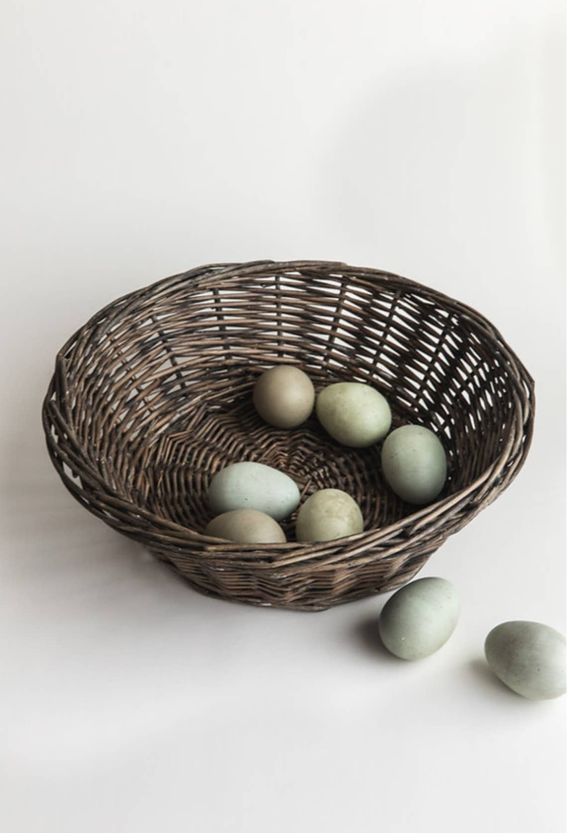 A versatile everyday multi use wicker basket in washed grey wicker. Use for vegetables or as a bread basket