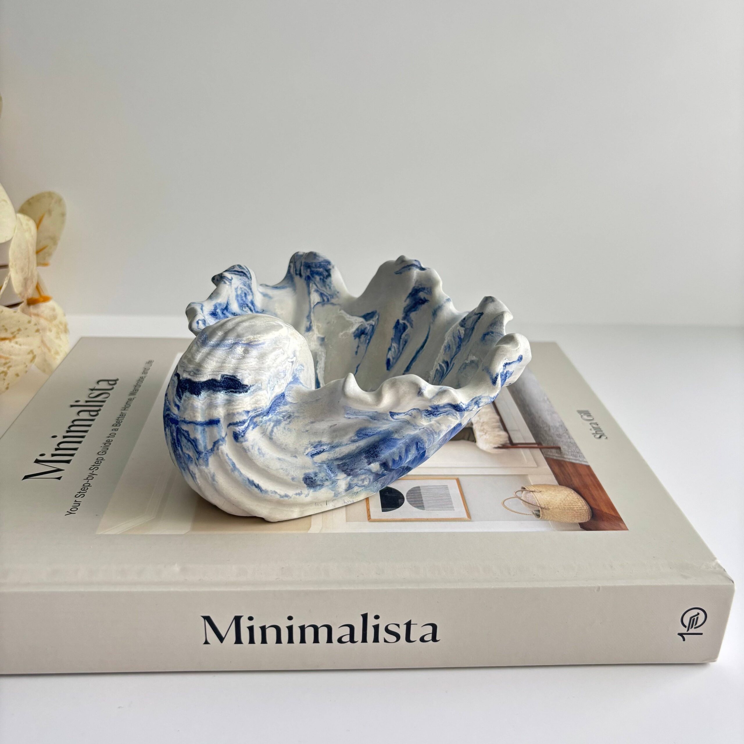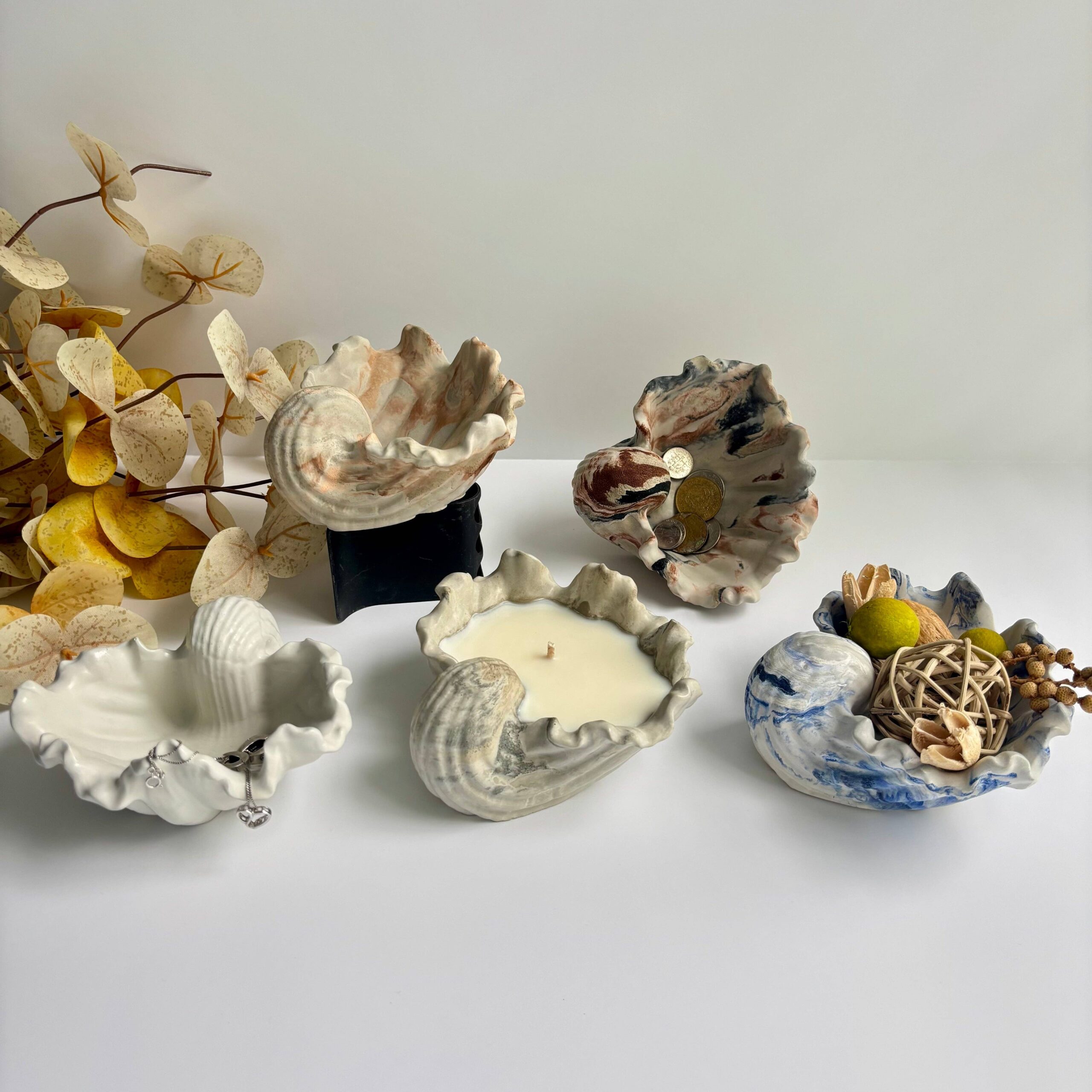 Handcrafted from concrete, the Selene Shell is a sculptural coastal-inspired bowl that blends elegance with function. Use it as a candle vessel, jewelry dish, or statement catch-all. Each piece features marbled details and organic curves—no two are the same.
