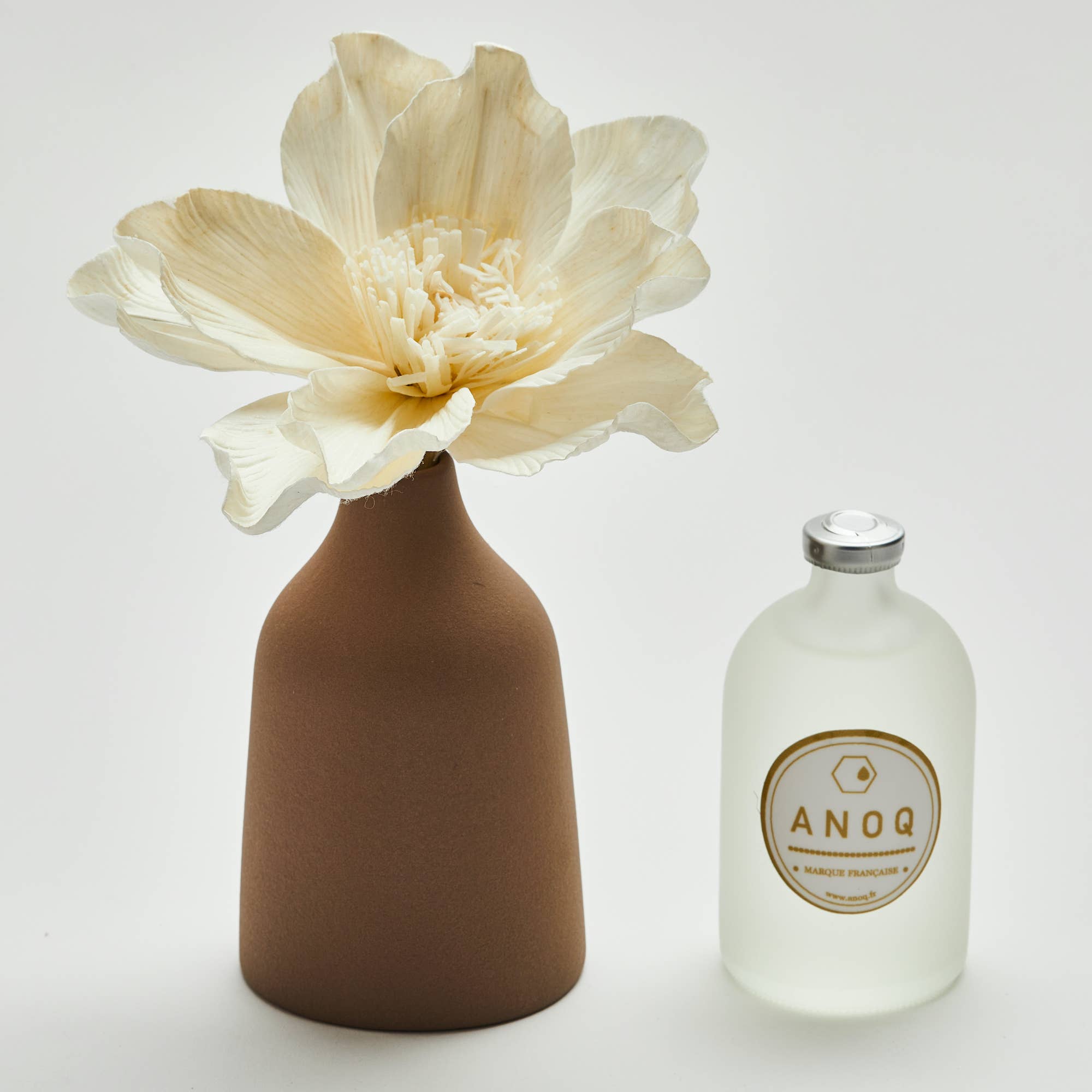 Ceramic vase with a flower with cotton stem. This vase is a fragrance diffuser in which home fragrance is poured. Diffusion takes place by capillarity.