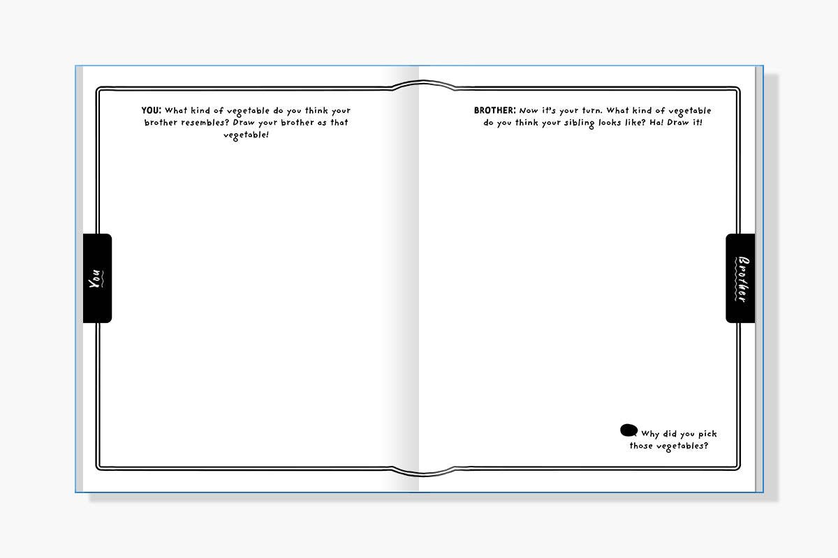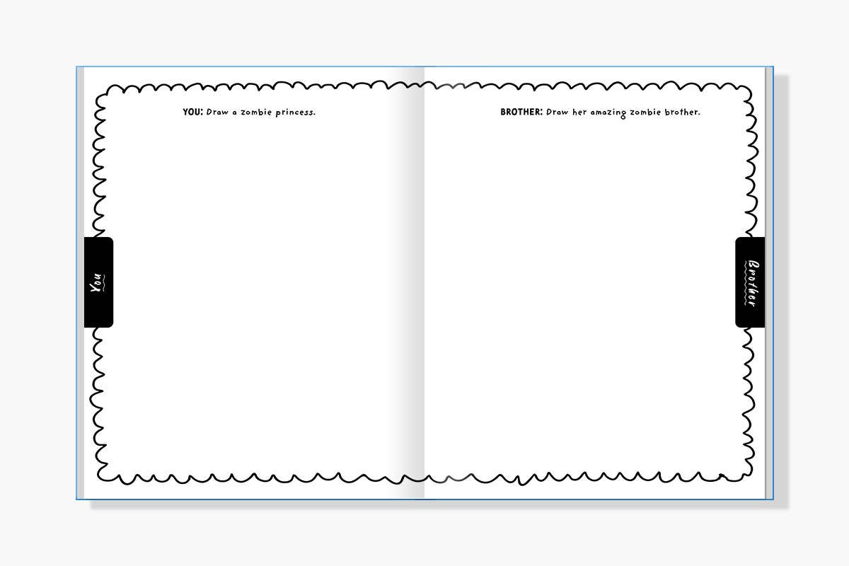 In this unique two-person doodle book, kids and their brothers create joint works of art by following over 100 creative prompts that get them both working on the same drawing. Co-create a fun buildings, exciting foods, and interesting outings, as you talk, laugh—and most importantly, bond—during hours of drawing, doodling fun!