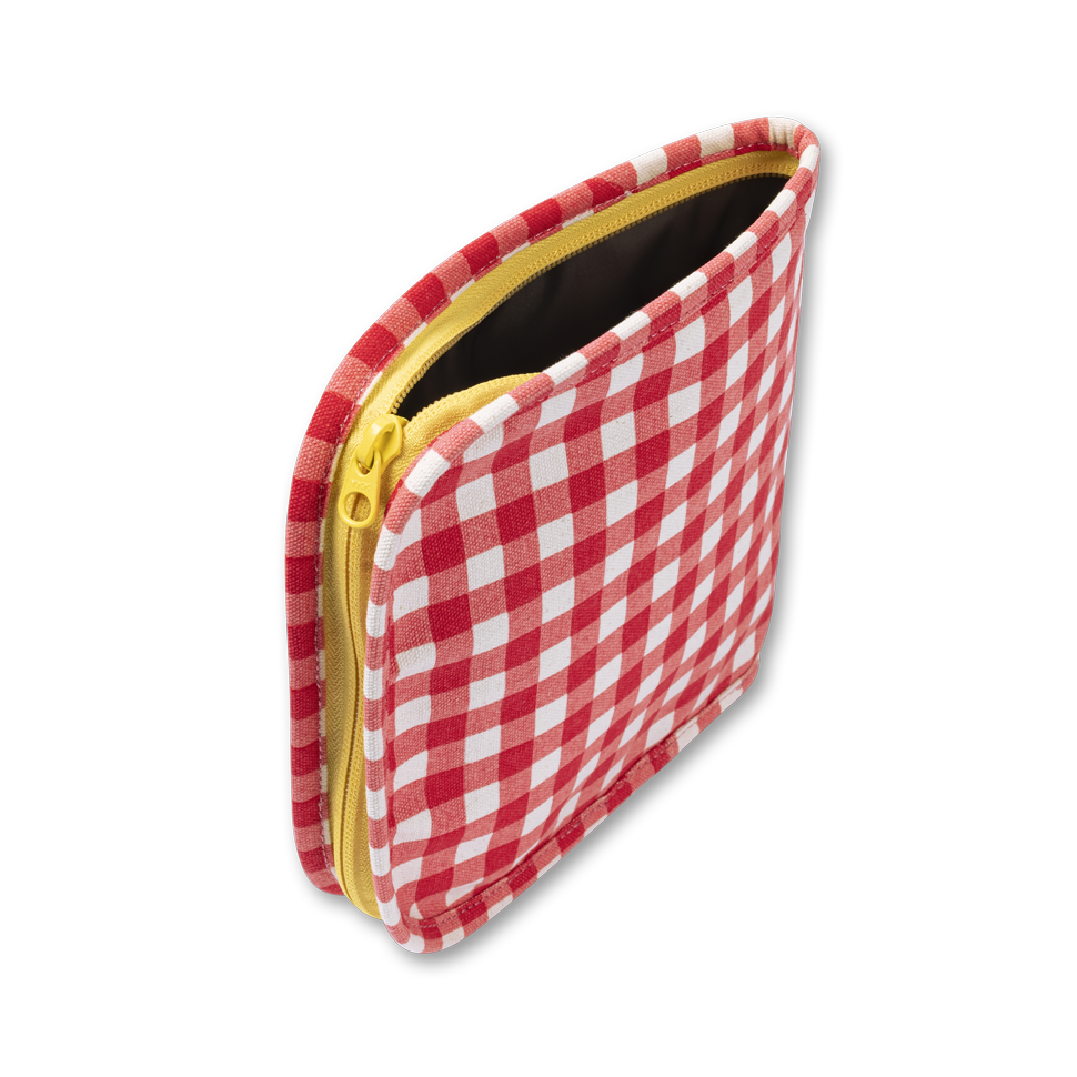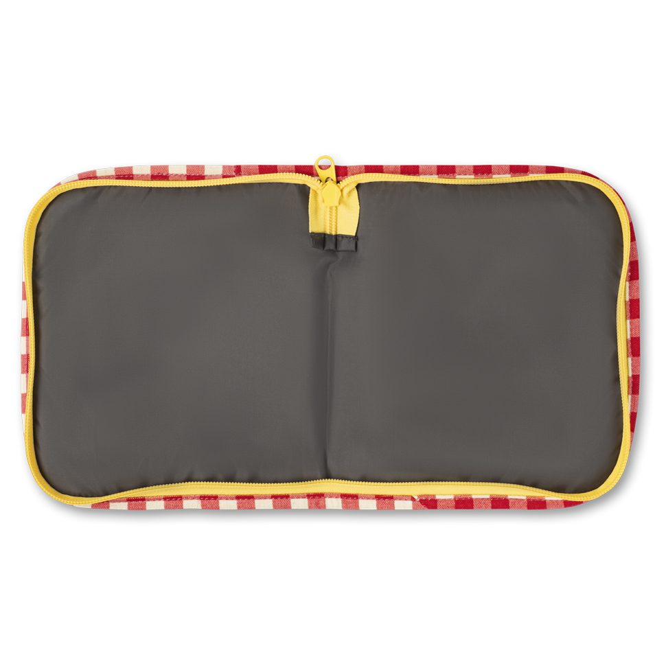 Double-duty snack bag: open part-way to use as a bag, zip open completely to use as a flat placemat. Safe, non-toxic, tested-food safe lining. Machine washable, eco-friendly, replacement for single-use plastic baggies.