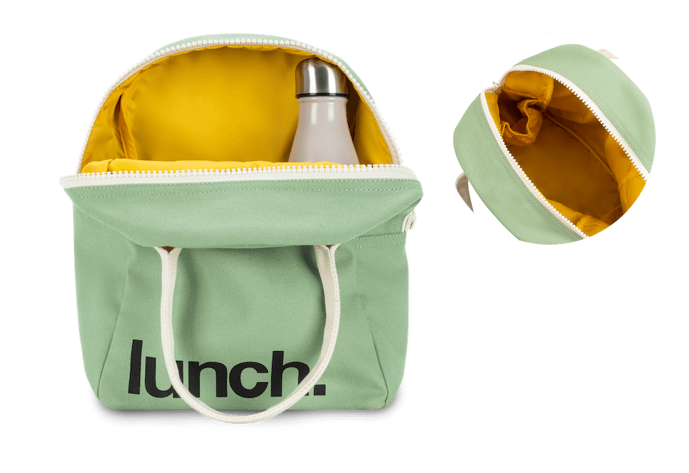 Lunch bag is lined but not insulated. Water-resistant lining works well with a low-condensation ice pack, if desired.