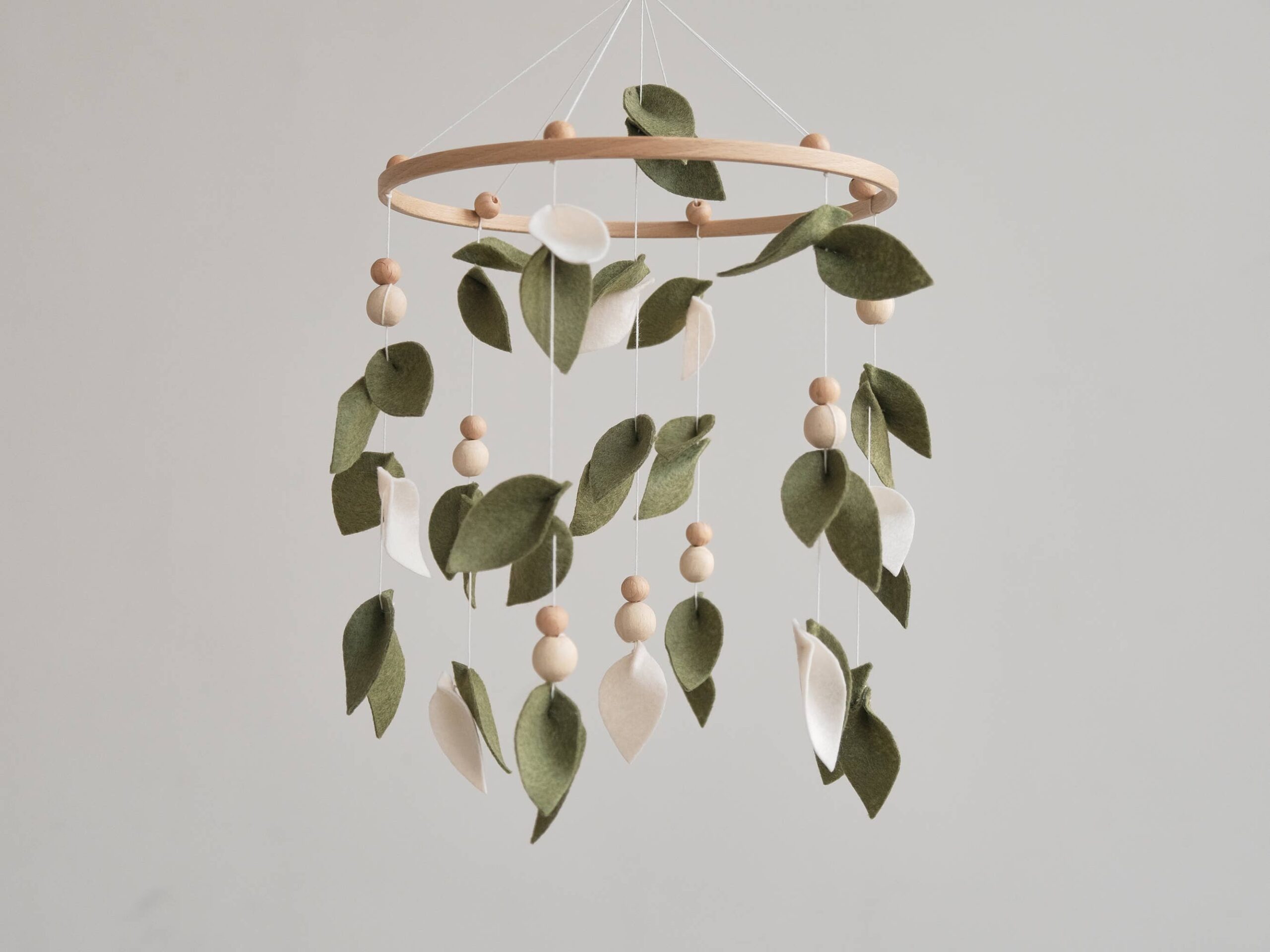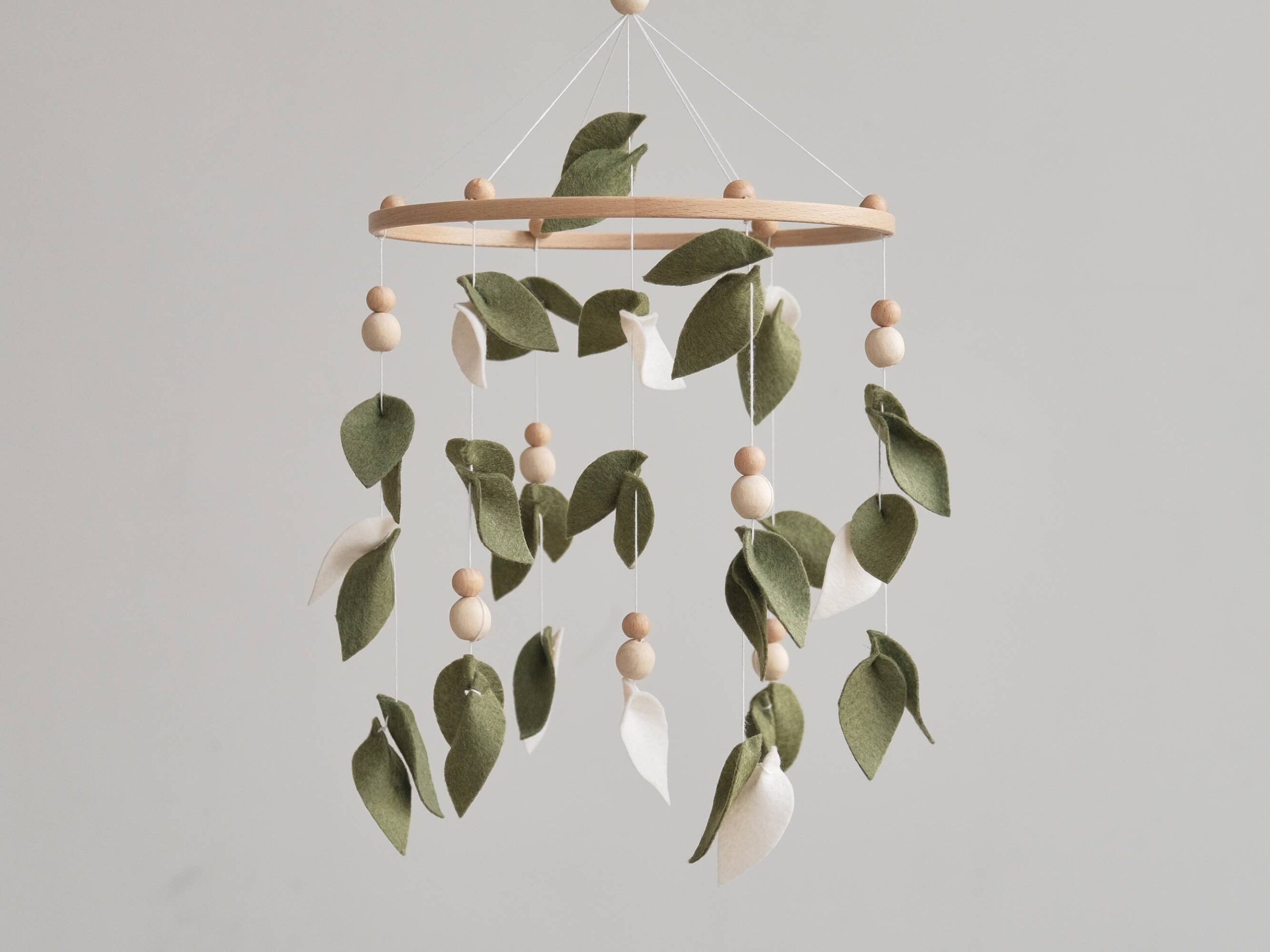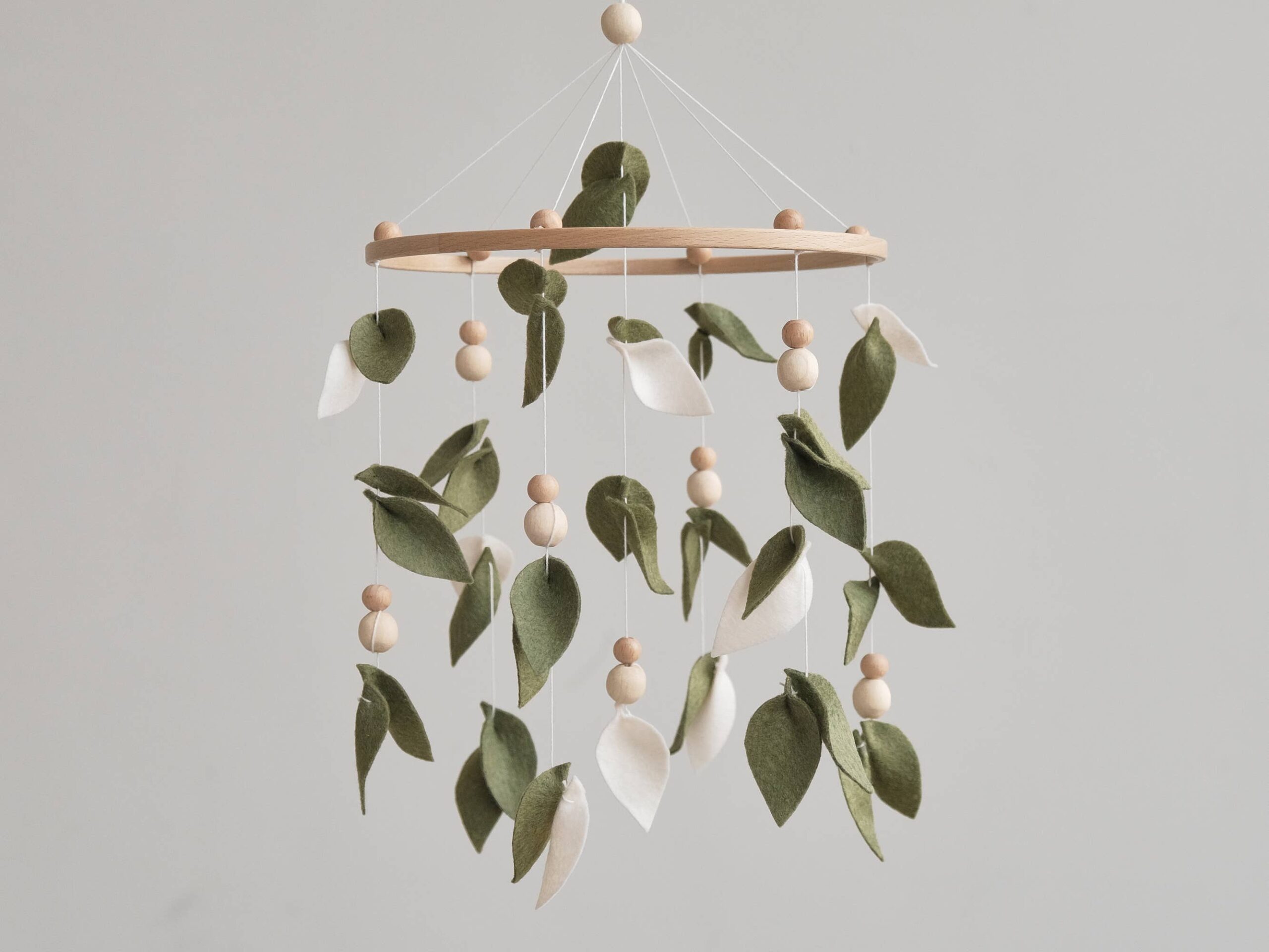 Add a touch of nature to your little one’s nursery with this enchanting Baby Forest Mobile. Featuring delicate leaves and wooden accents, this Leaf Crib Mobile creates a serene and whimsical atmosphere perfect for any Boho-inspired nursery. Made to hang effortlessly above your baby’s cot, this Green Nursery Mobile will captivate your little one with its gentle movement and calming colors. Bring the beauty of a enchanted forest into your baby’s space with this Green Mobile that is sure to delight both baby and parents alike. Handcrafted with care, this Hanging Mobile makes a wonderful Baby Shower Gift that will be treasured for years to come