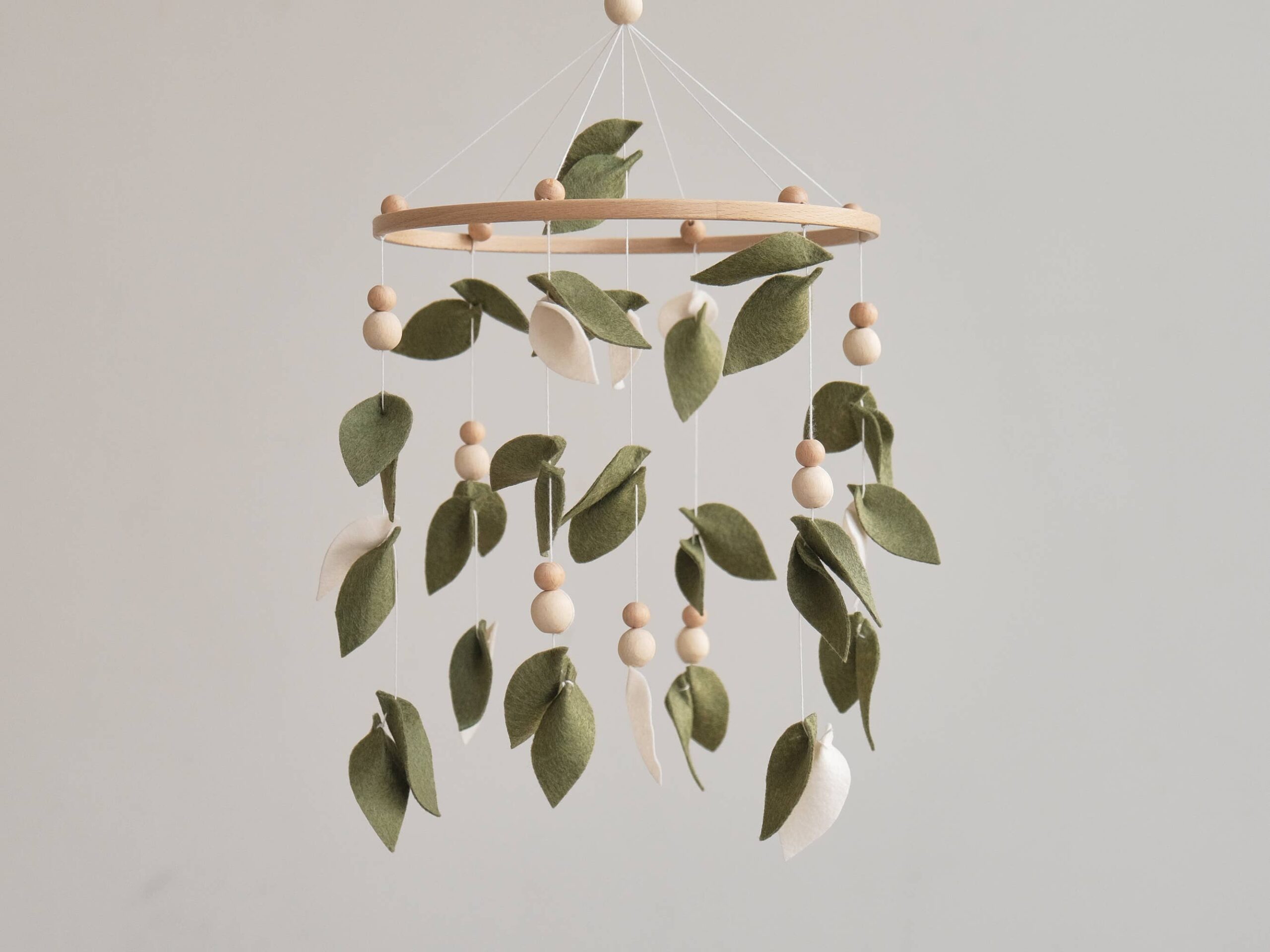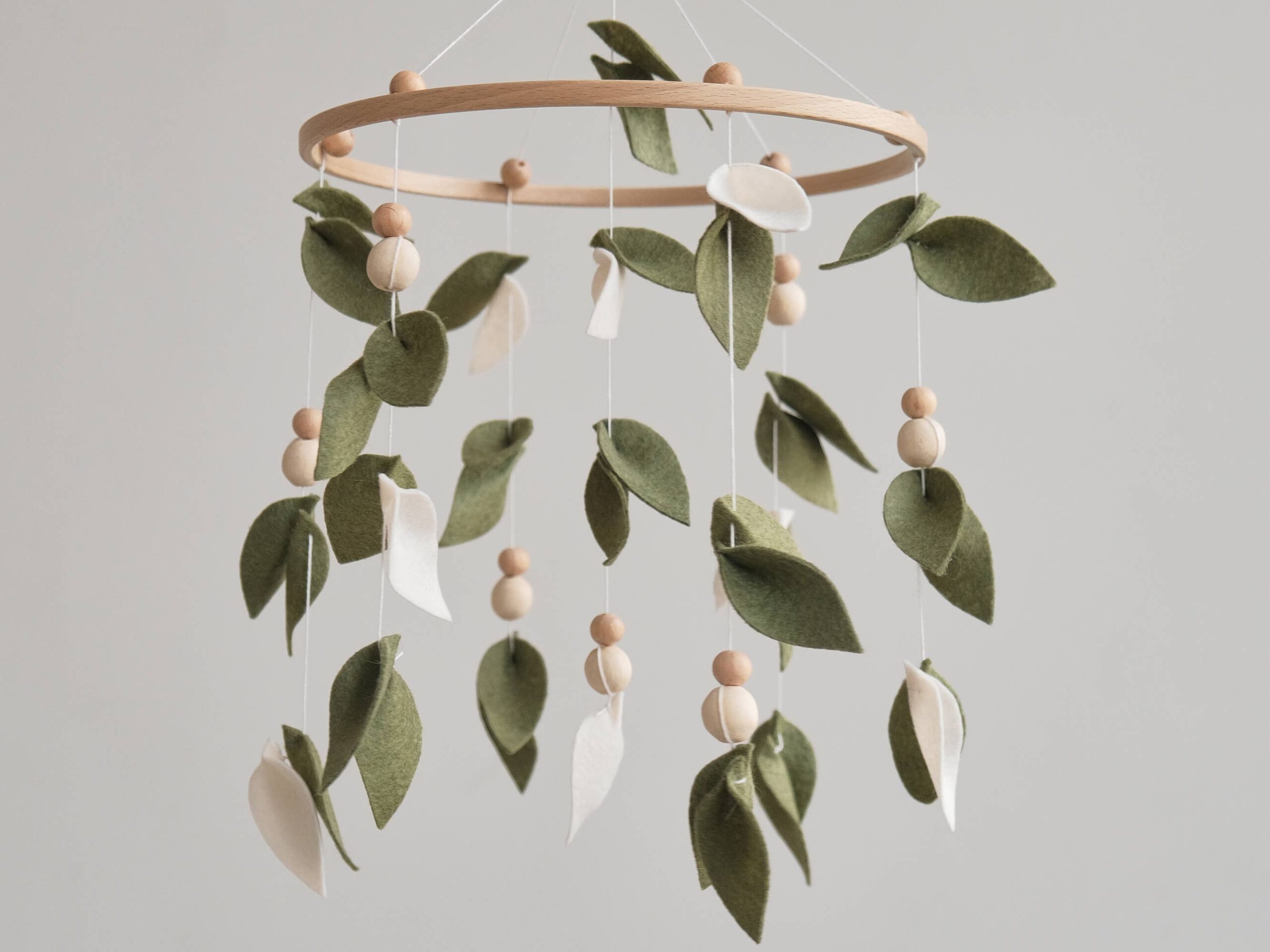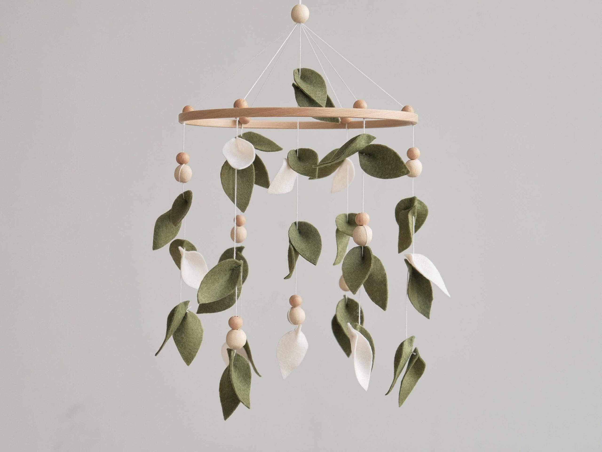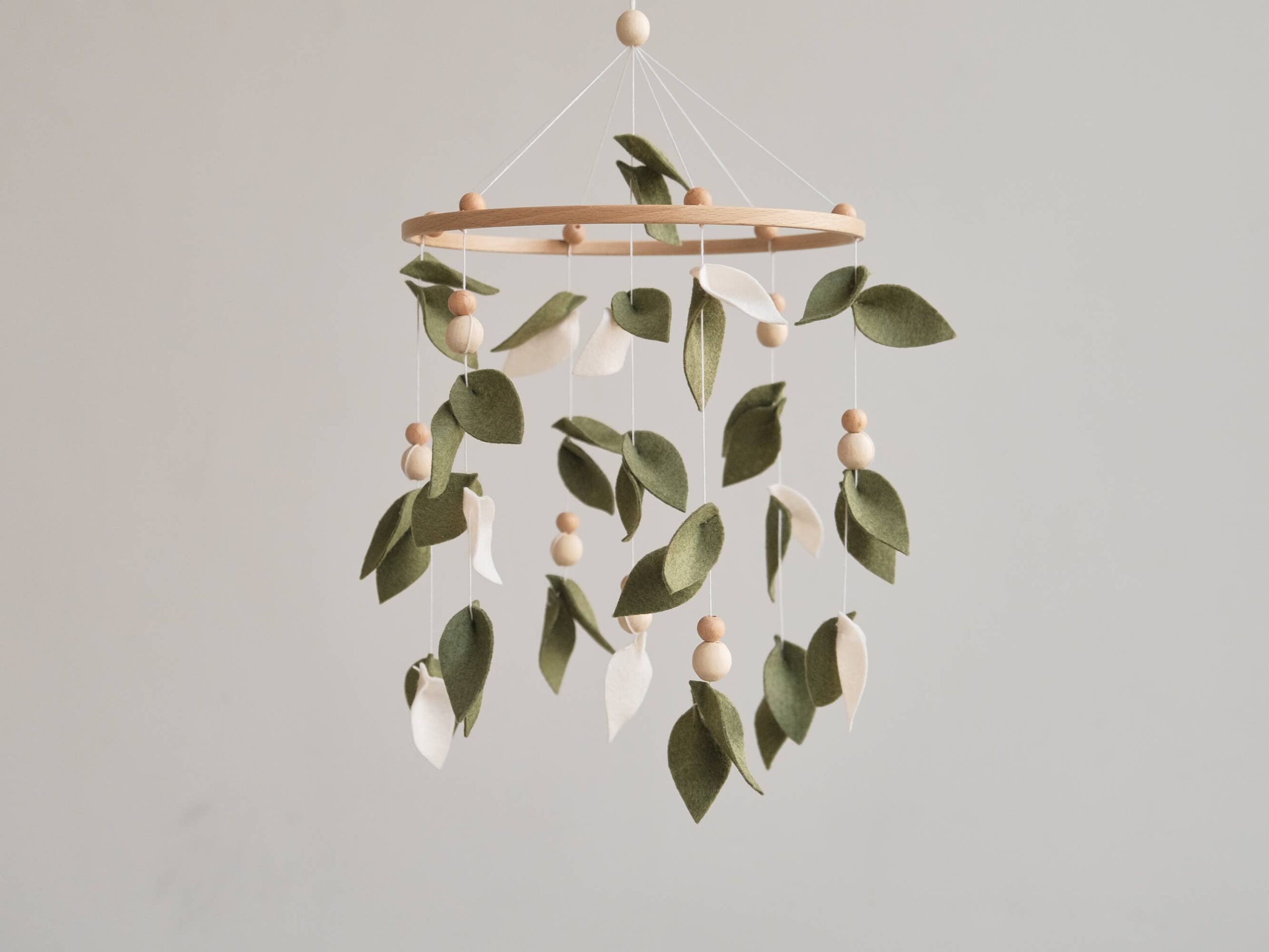 Add a touch of nature to your little one’s nursery with this enchanting Baby Forest Mobile. Featuring delicate leaves and wooden accents, this Leaf Crib Mobile creates a serene and whimsical atmosphere perfect for any Boho-inspired nursery. Made to hang effortlessly above your baby’s cot, this Green Nursery Mobile will captivate your little one with its gentle movement and calming colors. Bring the beauty of a enchanted forest into your baby’s space with this Green Mobile that is sure to delight both baby and parents alike. Handcrafted with care, this Hanging Mobile makes a wonderful Baby Shower Gift that will be treasured for years to come