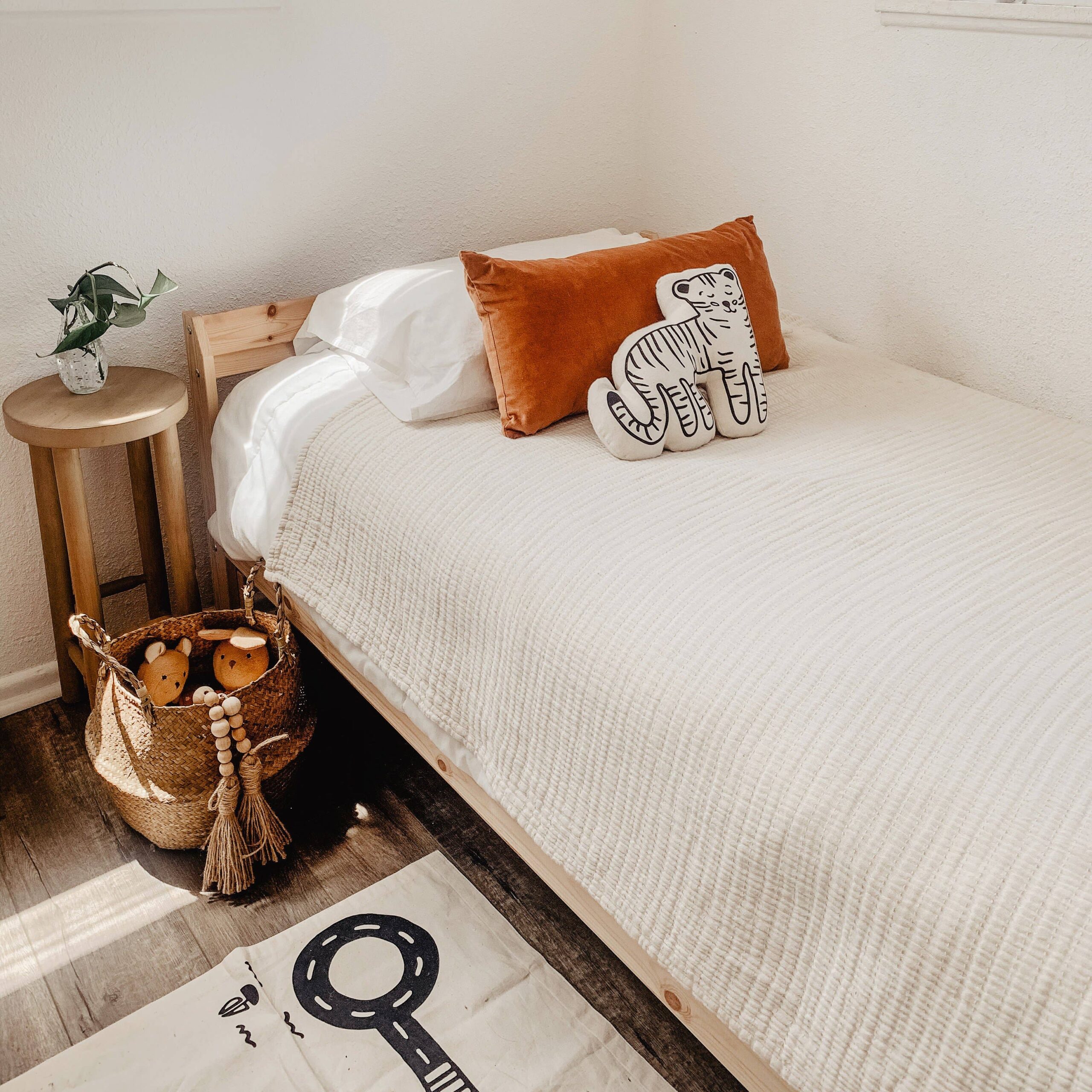 This tiger is a great addition to any kid’s space who tends to live on the wild side. Sewn and screen printed by hand on natural canvas by Kenyan artisans.