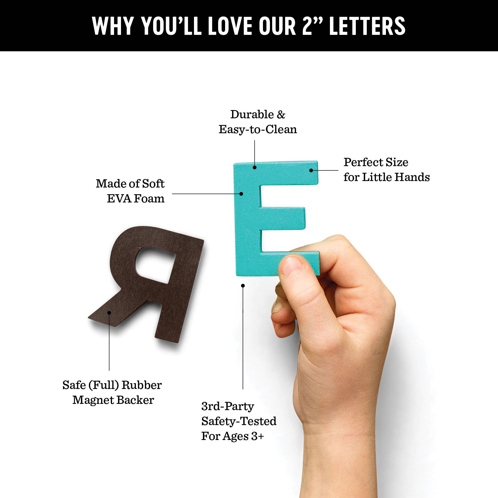 Elevate your inventory with our 36-piece modern magnetic letter sets. Each 2″ tall letter is crafted from soft EVA foam with a full rubber magnetic backing, ensuring safety for kids aged 3 and up. Perfect for little hands learning their letters, these magnetic sets combine fun and education in a stylish package. Rainbow Pop is a bright and modern color combo.