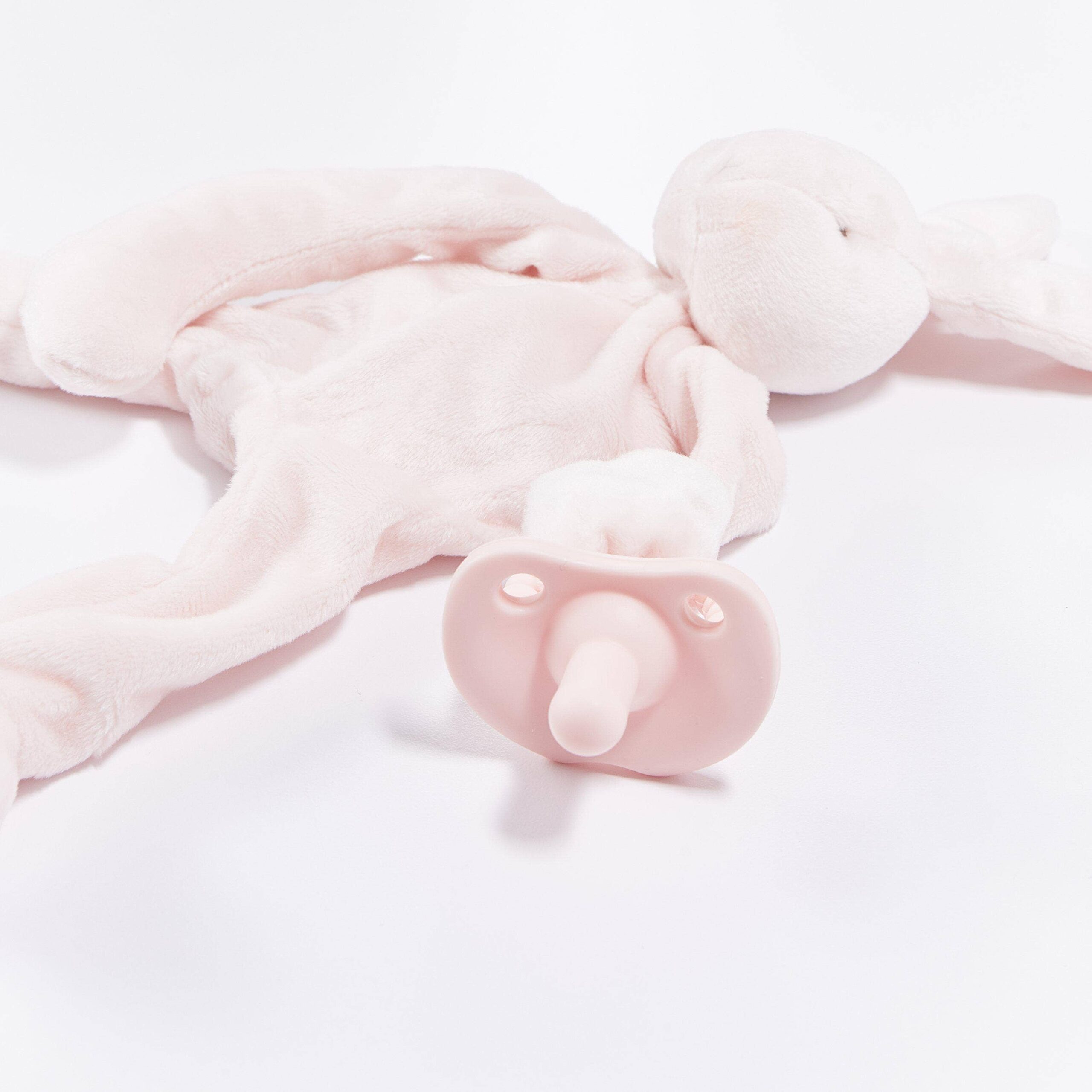 The Blossom Bunny Silly Buddy animal pacifier holder is the perfect gift for your wee one with multiple ways to soothe. Super-soft and floppy, super silly, and oh-so useful, this take-a-long pal will tie onto a baby’s stroller, crib, or car seat. With a pacifier holder hand loop and fun rattling head, this is sure to be a favorite security item of Baby and Mom and Dad alike!