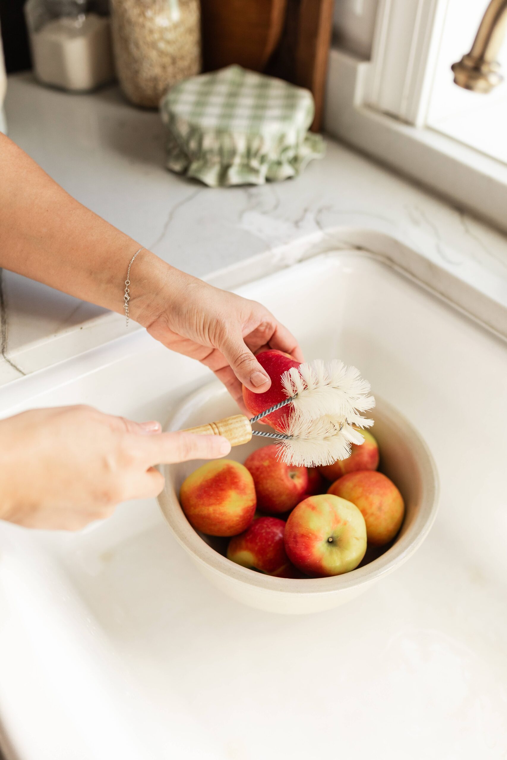 Inspired by some of our childhood memories spent working next to Grandma, this sturdy, American Made vegetable brush is a classic design that we are happy to bring to you and your customers. Selected for our collection with sustainability in mind, the sturdy wooden handle of this brush is fashioned from hardwoods native to American forests.