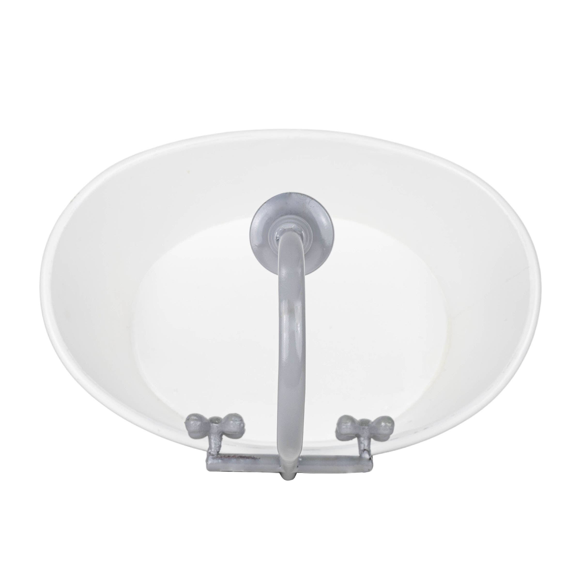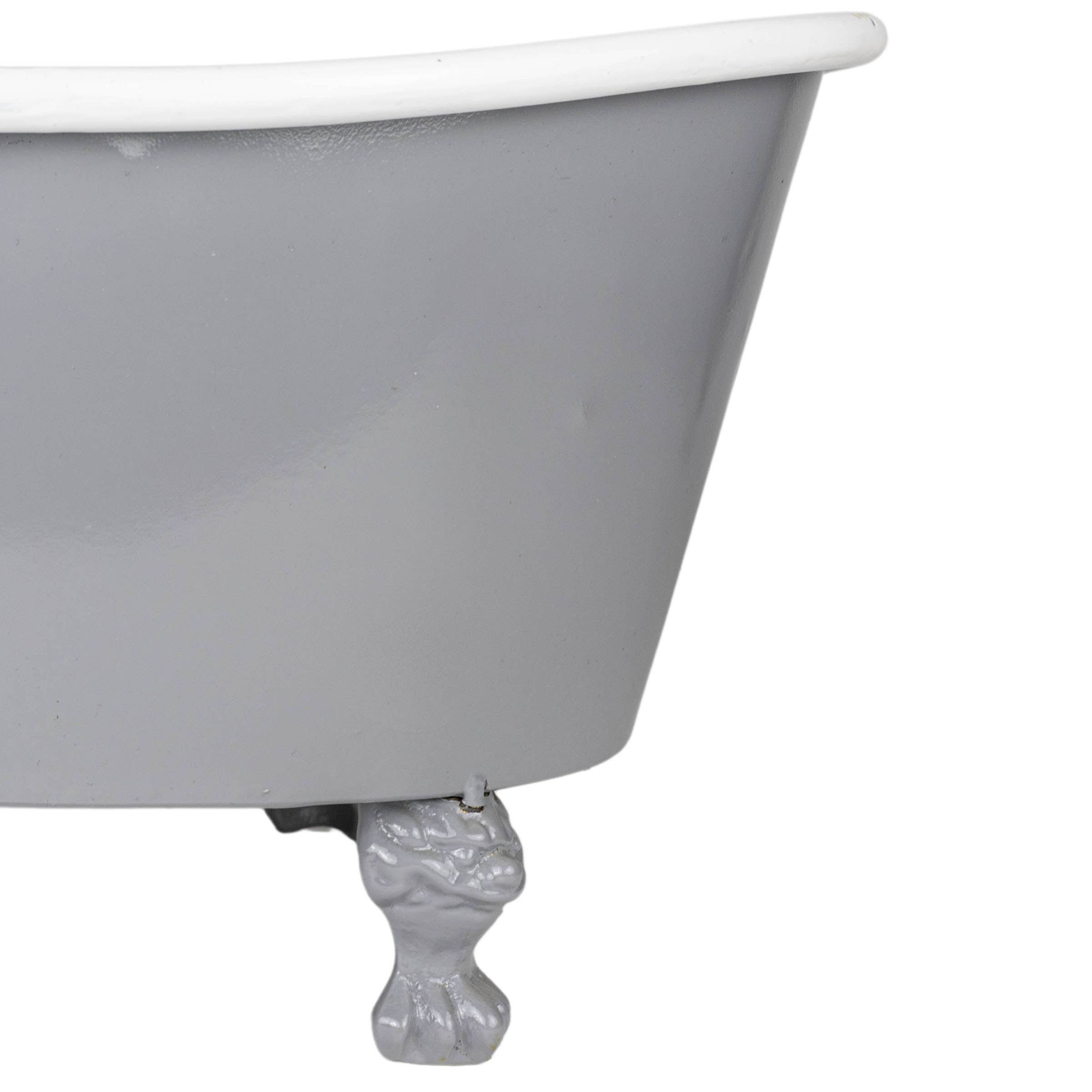 Watch your plants thrive in this antique bathtub shaped planter. Inspired by a vintage clawfoot bathtub, this planter features a realistic showerhead with mini knobs and elevated cast iron feet. Offering the perfect mix of novelty and farm inspired design, use this not only as a planter, but also for storage of throw blankets or other small items. A clean, high gloss gray lacquered finish accented with a clean white interior creates the perfect juxtaposition between traditional and modern farmhouse decor.