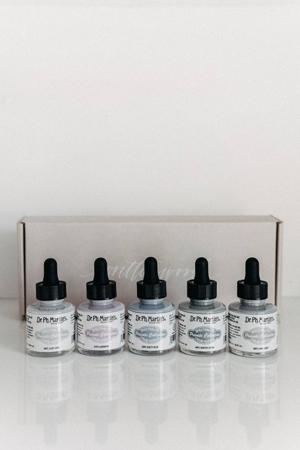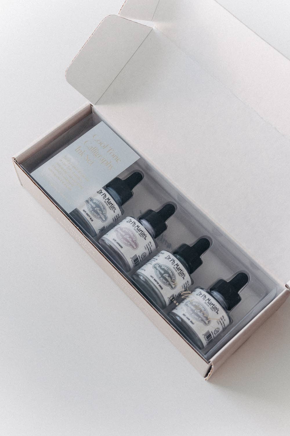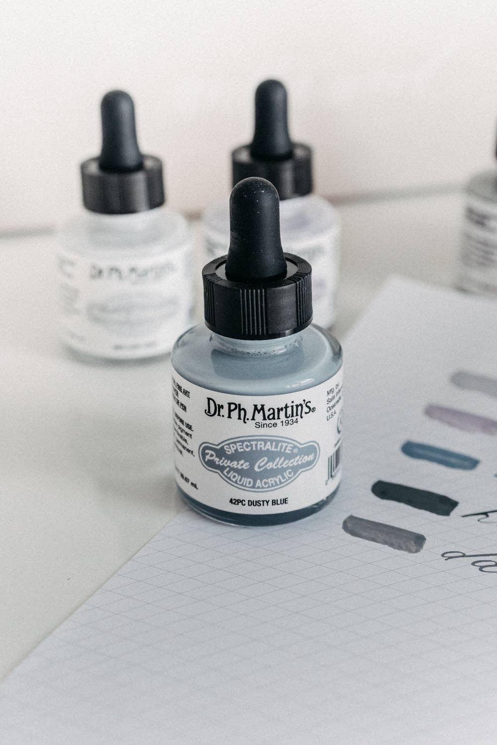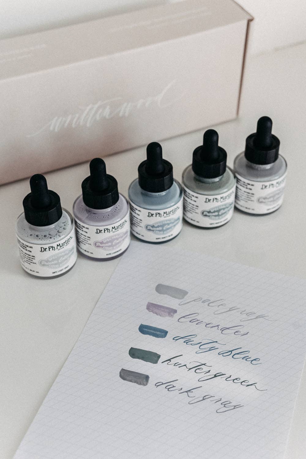 As a wedding calligrapher, my clients often ask me to create muted colored inks like taupe, blush, gray – but no ink from the bottle came just like this! So, we worked with Dr. Ph Martin’s to create an exclusive line of muted colored calligraphy inks, in warm tones and cool tones. I wanted to share my love for understated colors and can’t wait to see what you create with these inks.