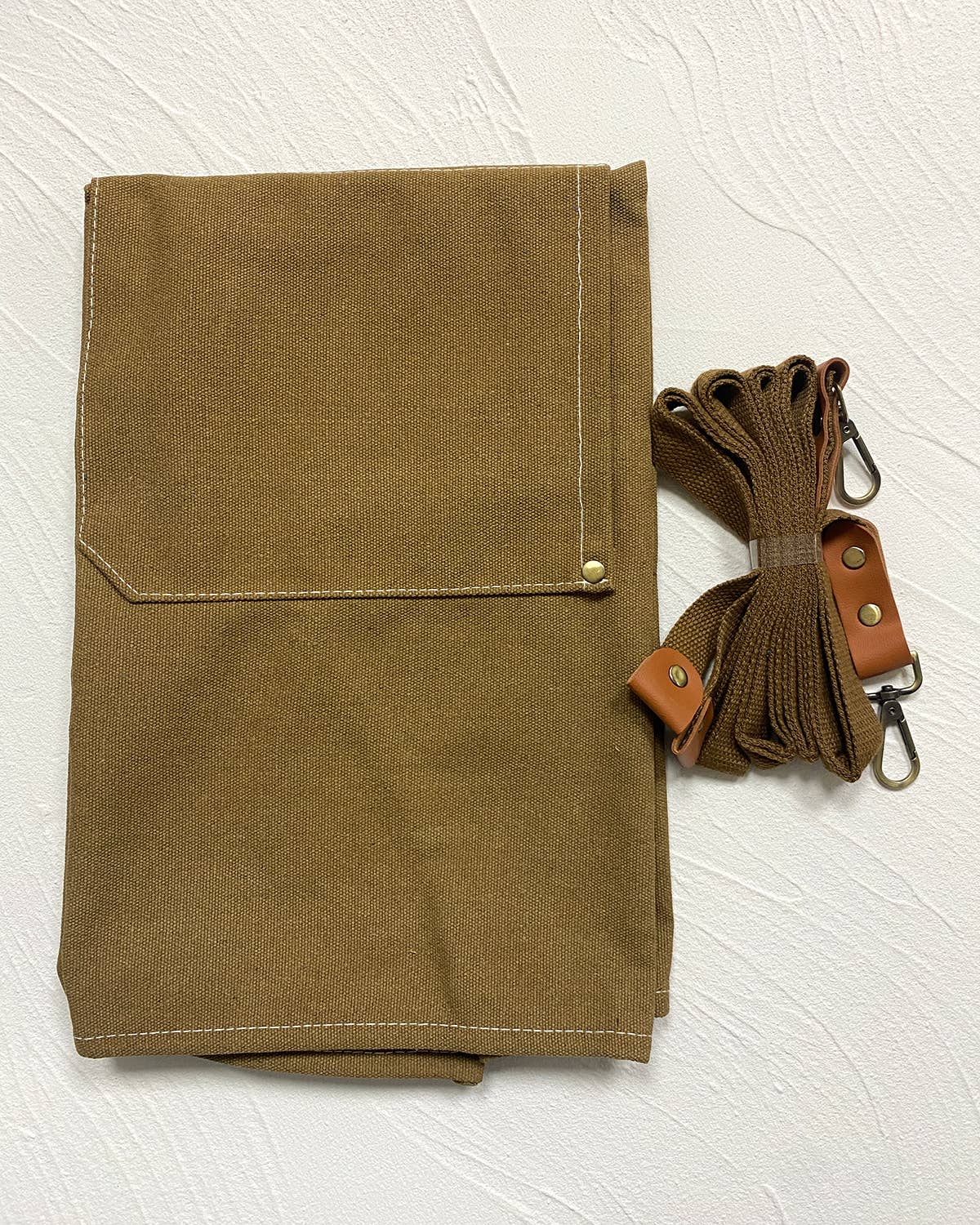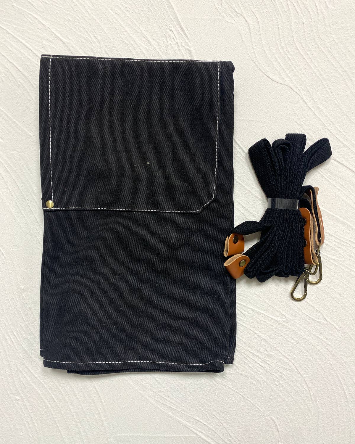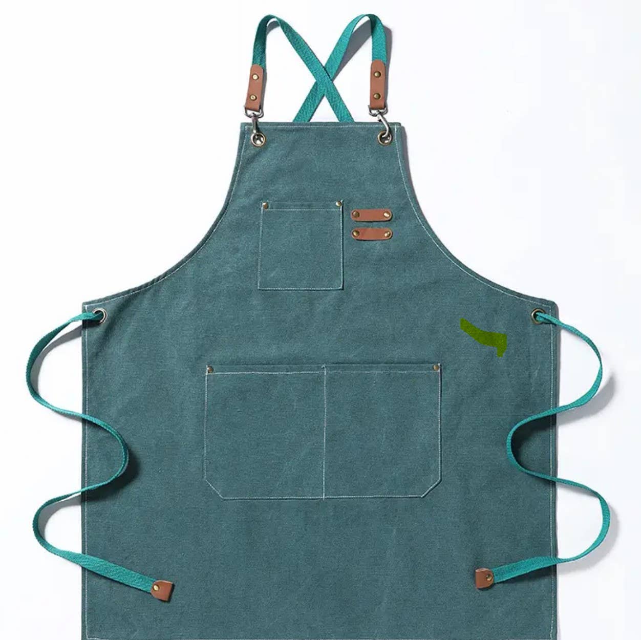 The apron is made from durable and high-quality canvas material, which is both strong and easy to clean.