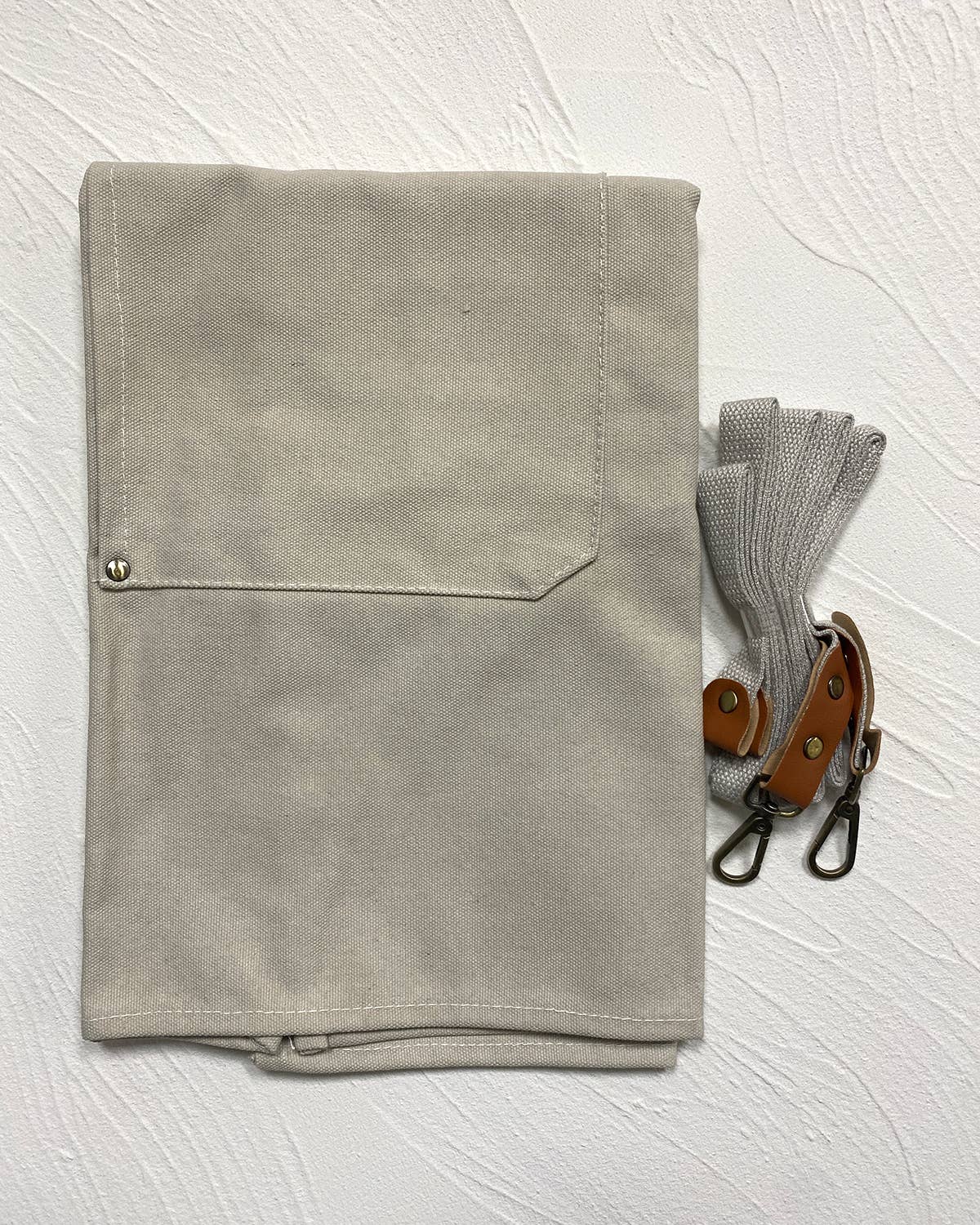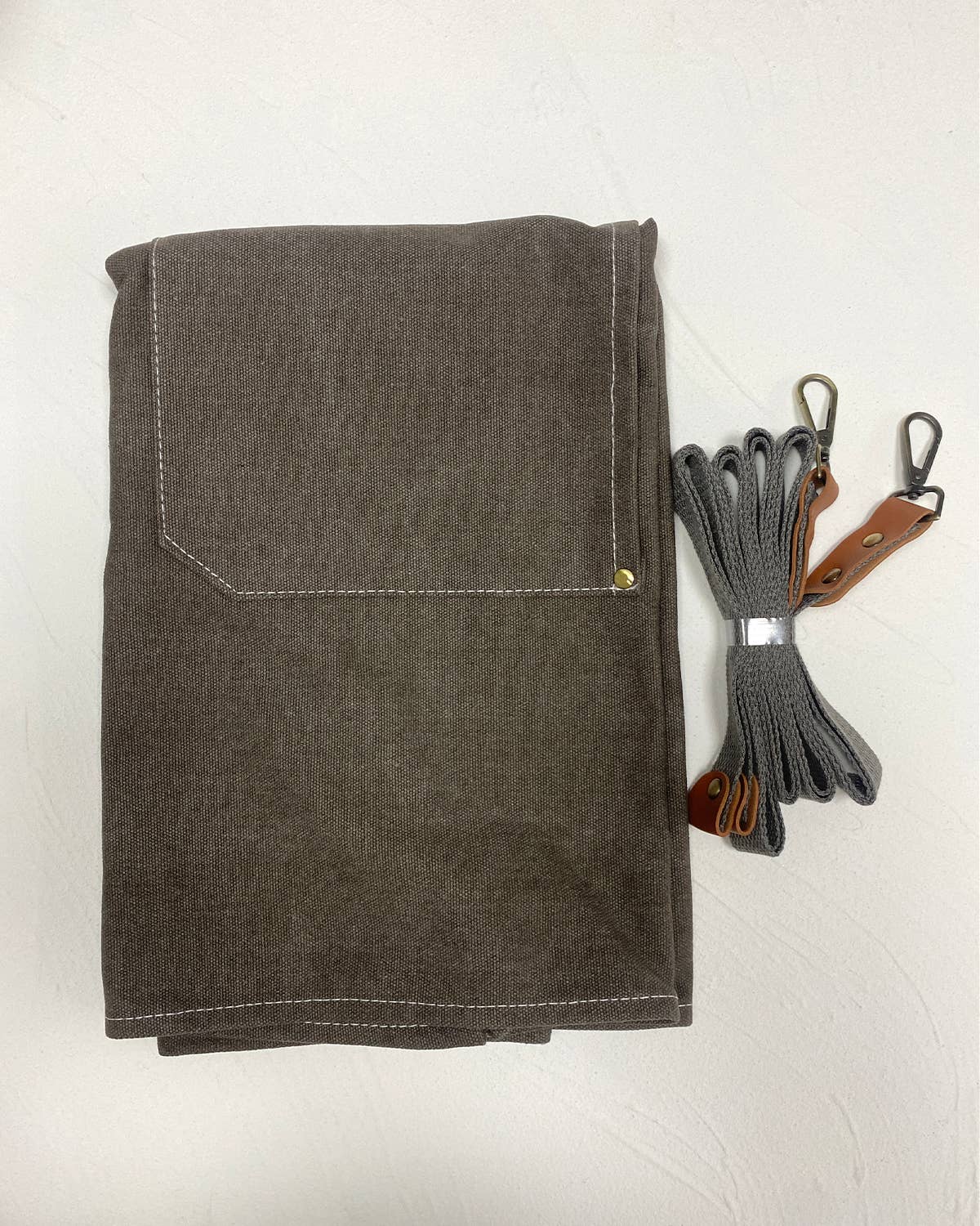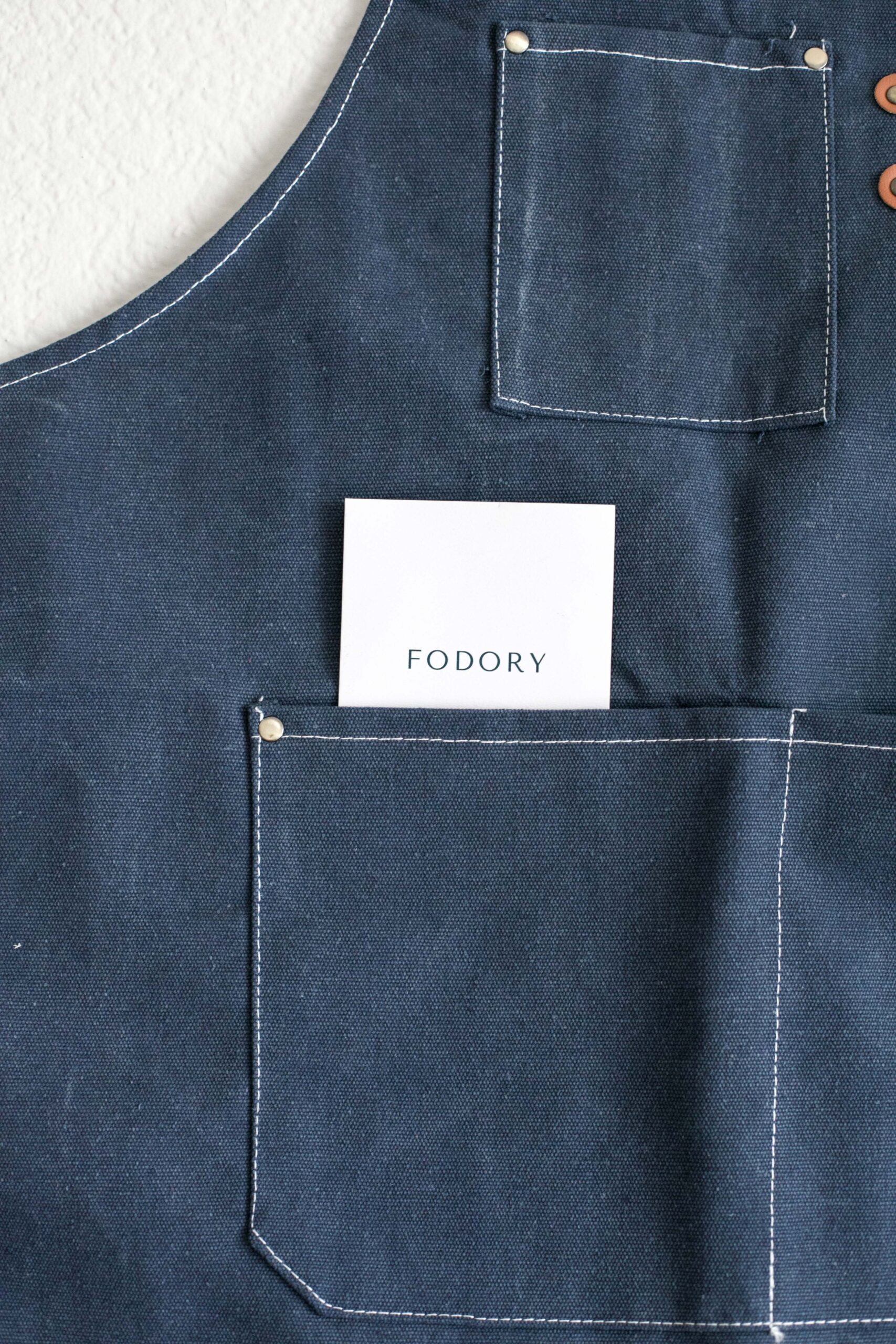 The apron is made from durable and high-quality canvas material, which is both strong and easy to clean.