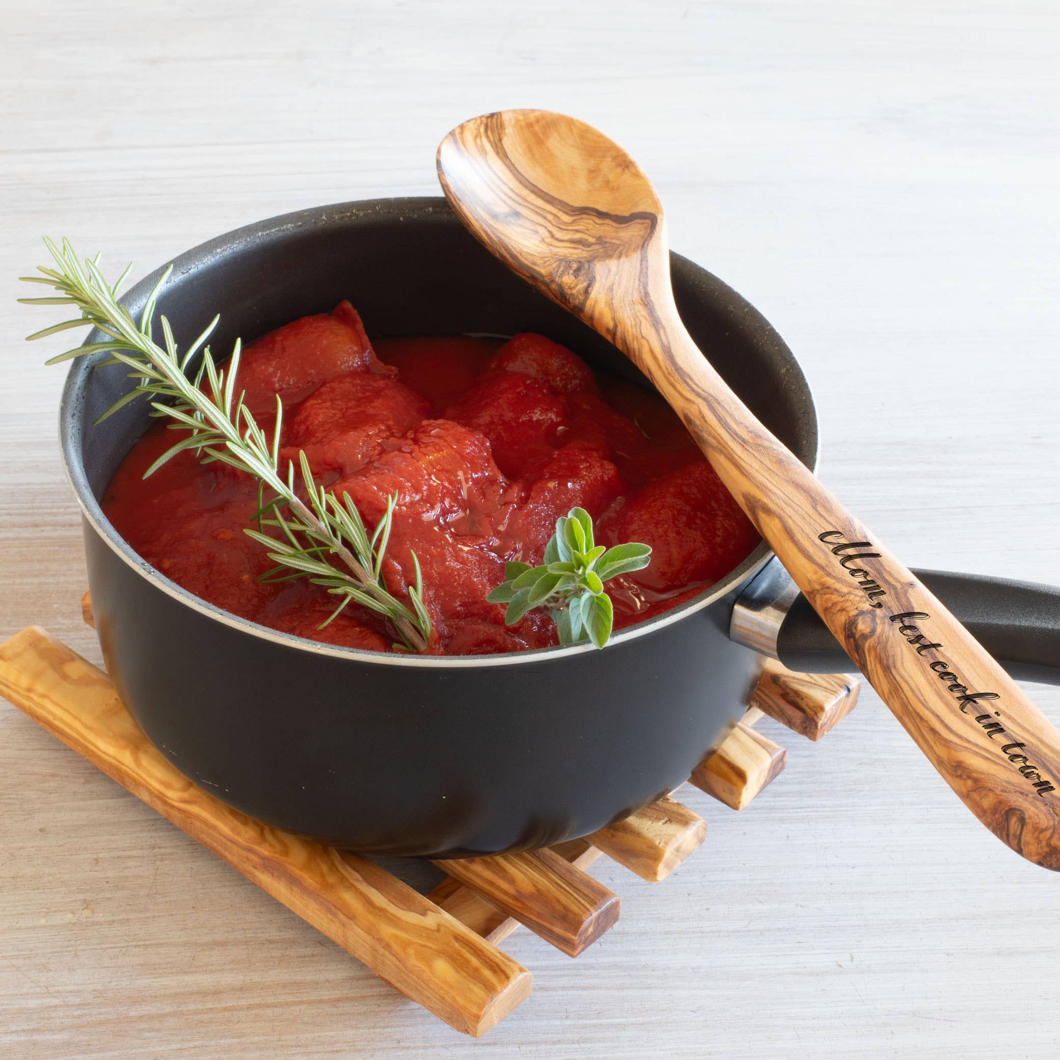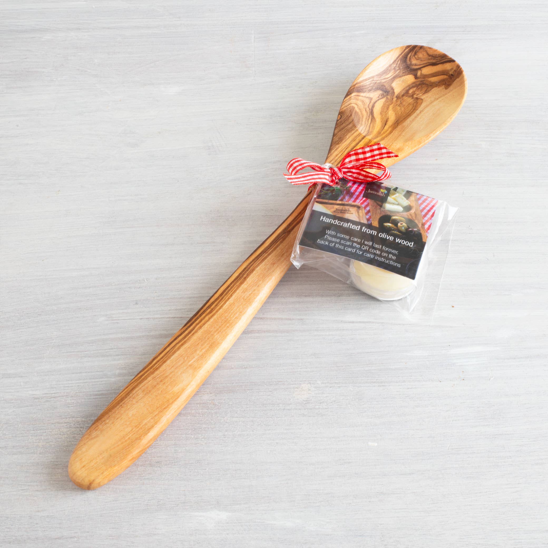 Olive wood is solid, robust, and clean, making it the perfect material for kitchen utensils. Our spoon is rigid and strong, ensuring that it can handle even the toughest cooking tasks with ease. We oil this item with organic extra virgin olive oil, which adds a natural varnish to the wood and makes it 100% food-suitable.