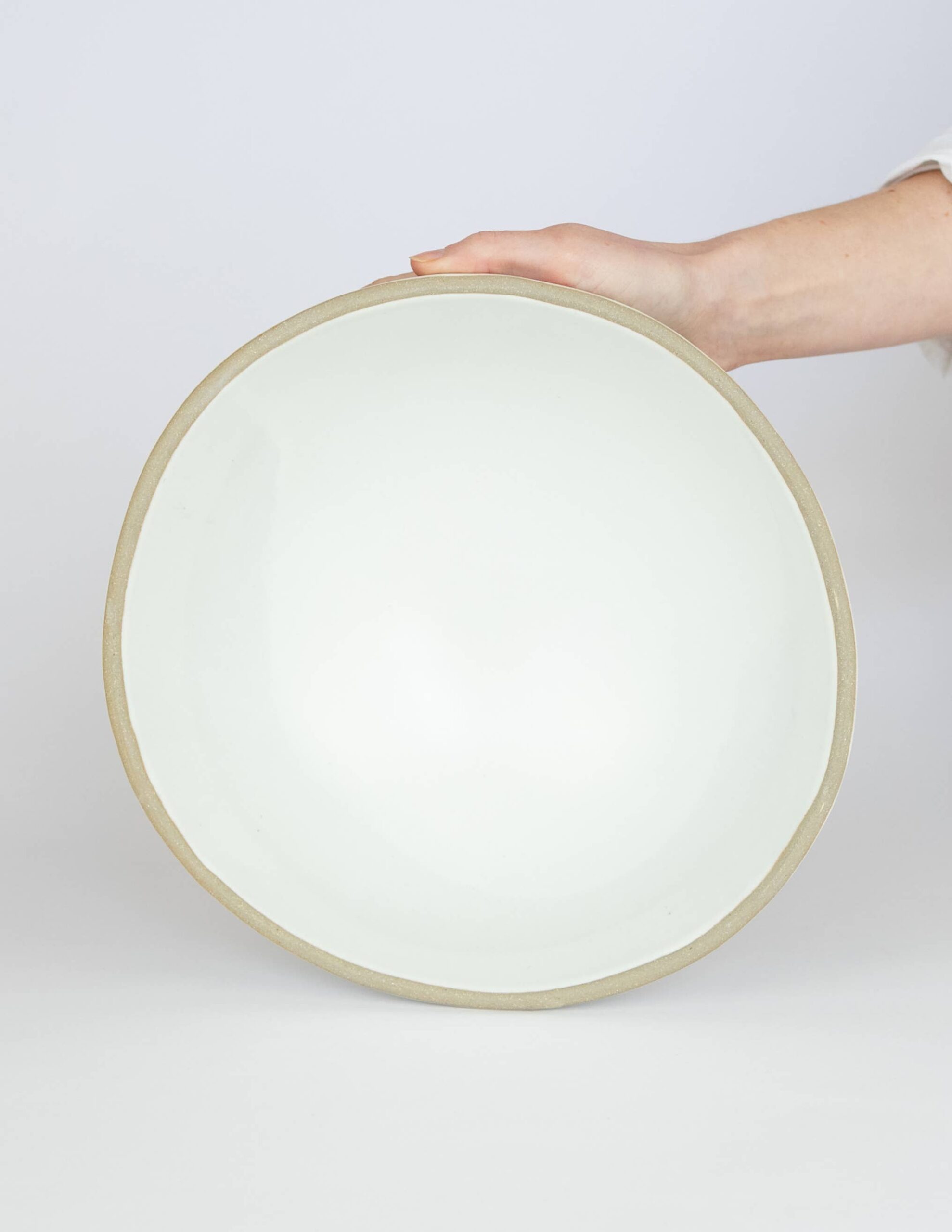 This Extra Large Bowl has a small foot around the bottom, ensuring steady placement on your table or counter and ease of stacking. The all-in-one mixing bowl, serving bowl, salad bowl, whatever your heart desires bowl!