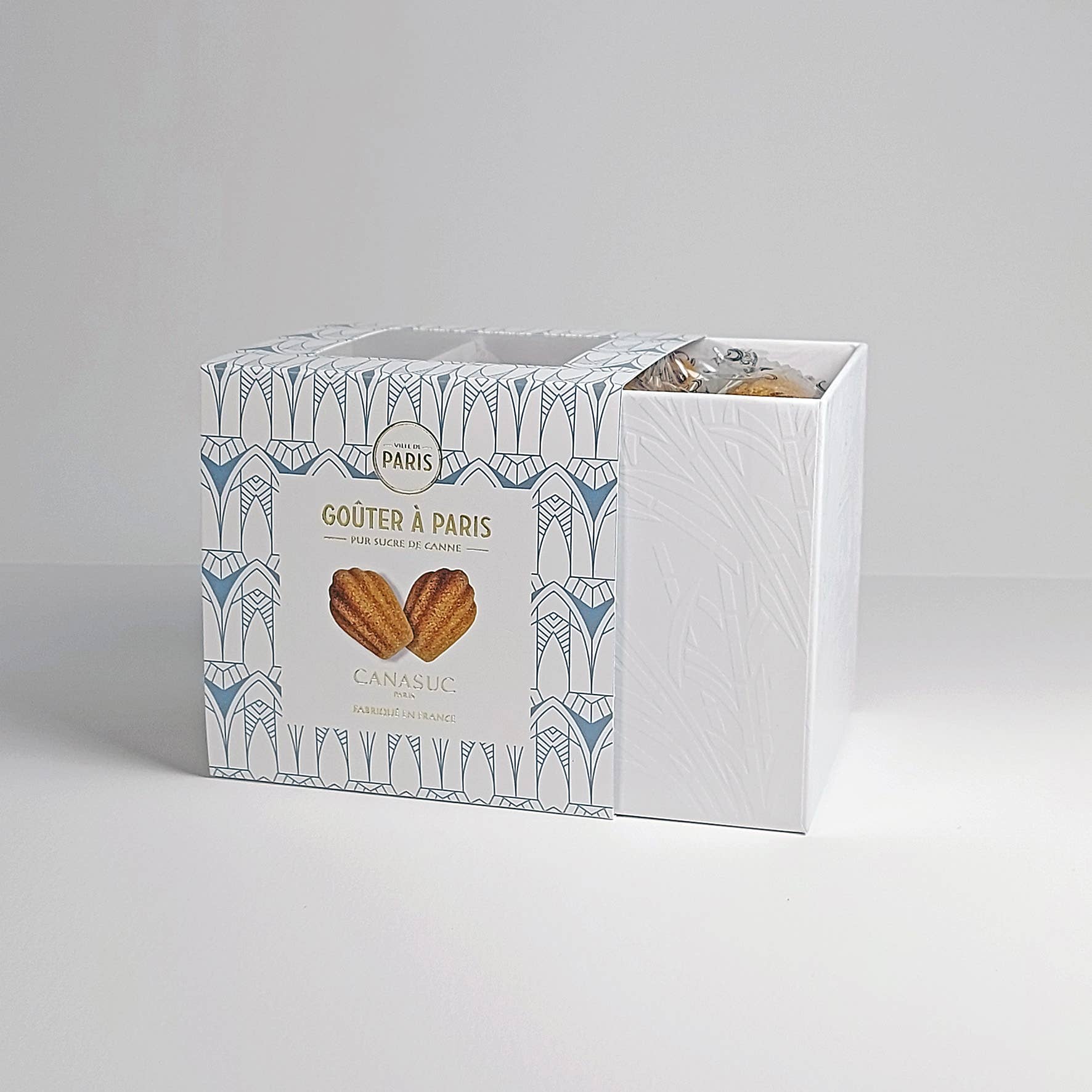 Pretty madeleine-shaped sugars for a French-style tea party! Indulge in a sweet pleasure at tea time with these madeleine-shaped sugars! Created by Canasuc in collaboration with the City of Paris, “Goûter à Paris” transports you into the ambiance of a Parisian tea party.