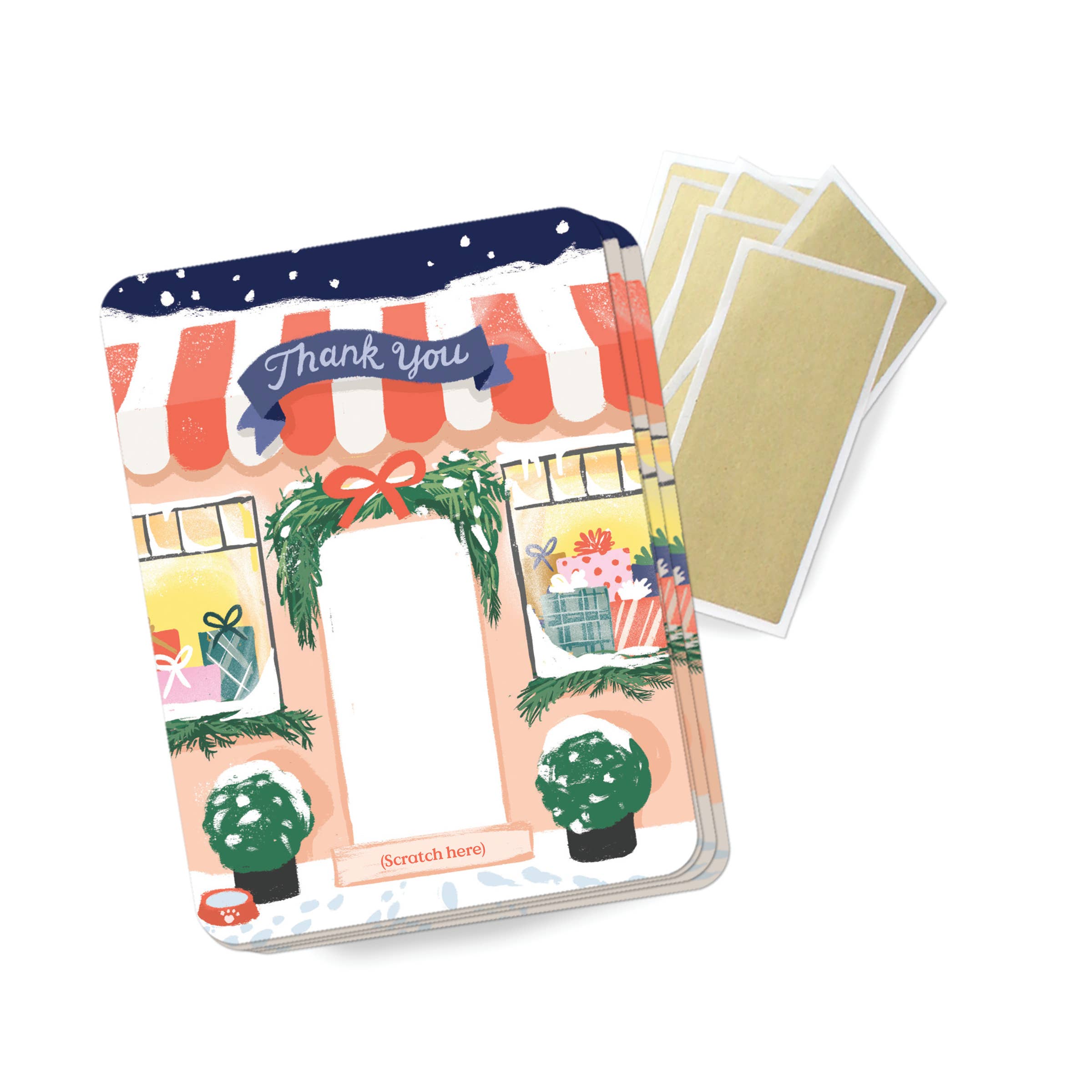 Create your own scratch-off cards to build loyalty and customer retention! Each set includes 100 blank cards and 100 stickers with instructions. Using a ballpoint pen, write a short message or discount and cover it with the included scratch-off sticker.