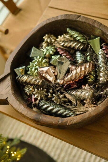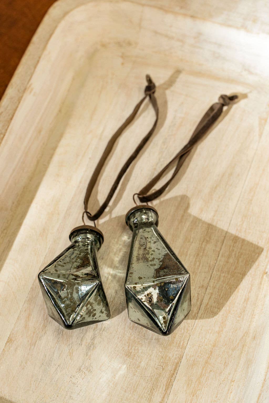 Materials & Composition: Made from recycled glass in a faceted diamond shape with a deep teal finish, complete with a velvet loop for a soft, elegant touch and easy hanging.