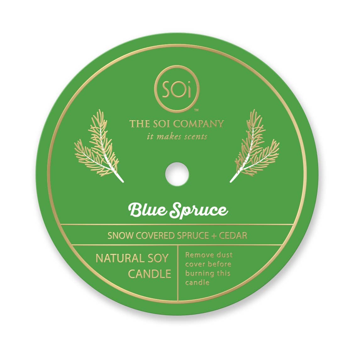Holly Jolly 12oz Confetti Icon Candle – Blue Spruce fragrance notes: Snow Covered Spruce and Cedar.