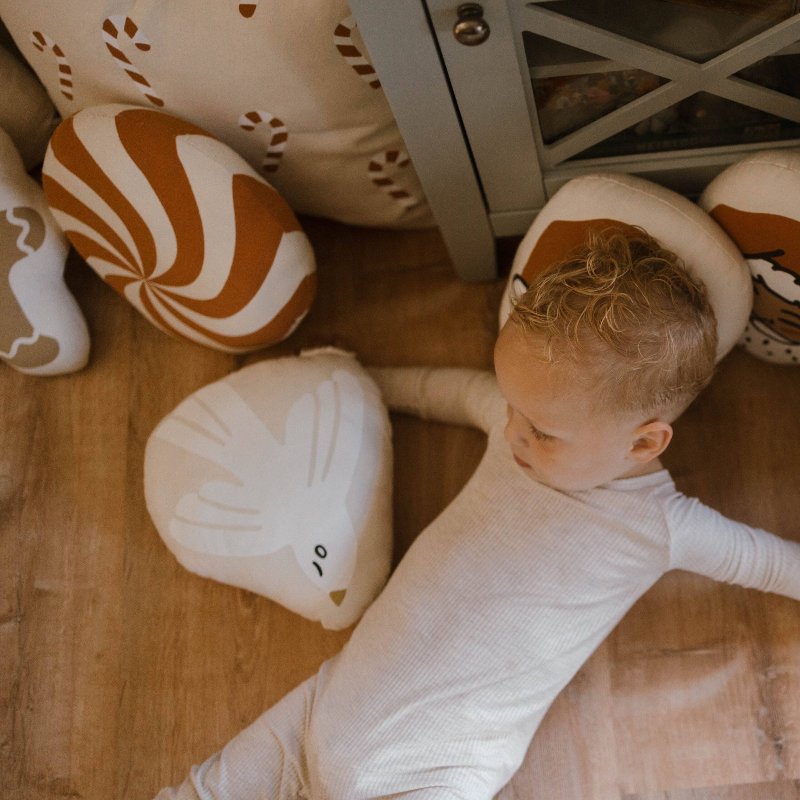 Peppermint Swirl Pillow sewn and screen printed by hand on natural canvas by local artisans in Mombasa, Kenya.
