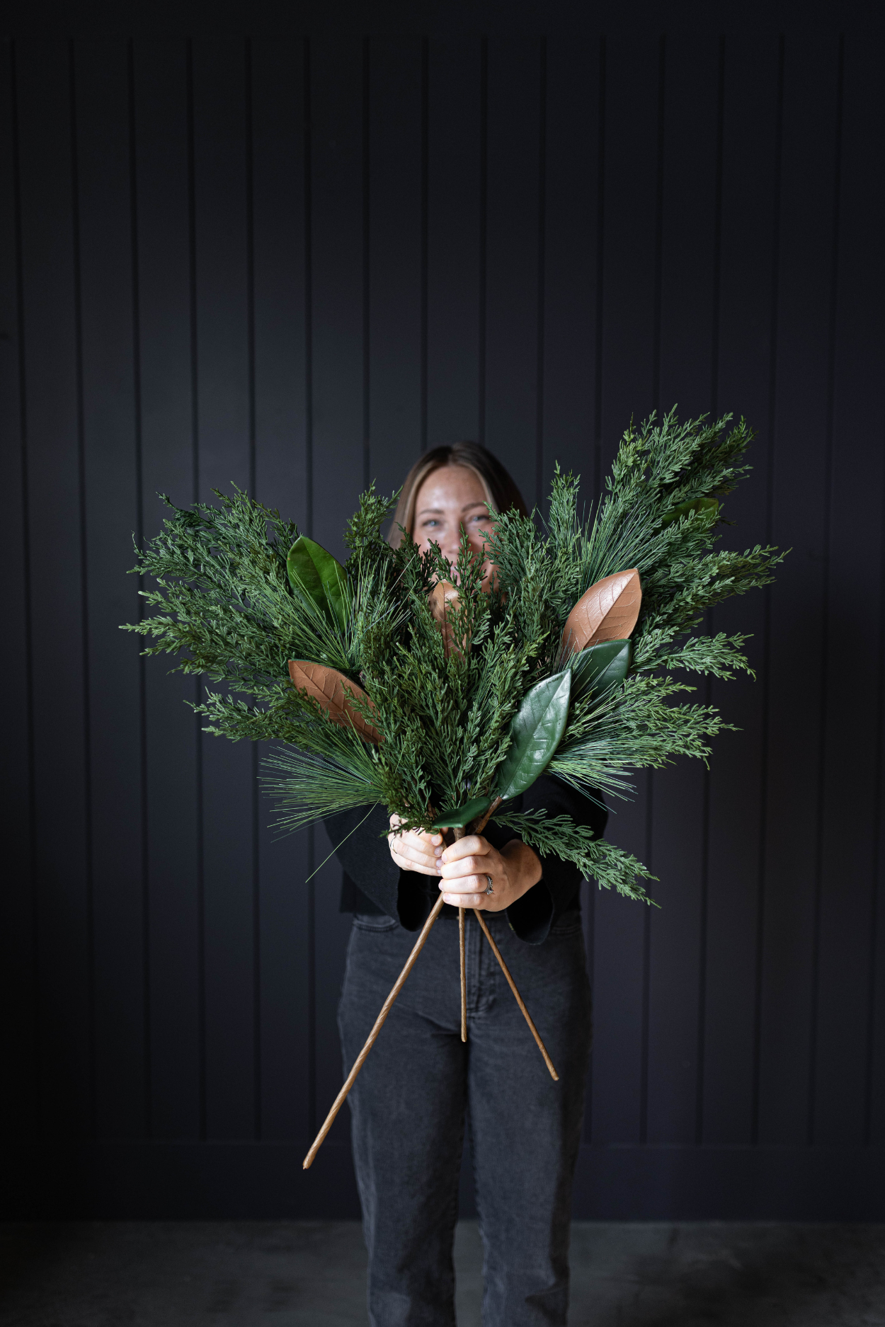 Magnolia Norfolk Cypress Mixed Real Touch Stems by Luxe B Co. is a high-quality, realistic holiday decoration option. Available in three sizes: Small Stem- 22”, Medium Stem- 28”, Large Stem- 42”