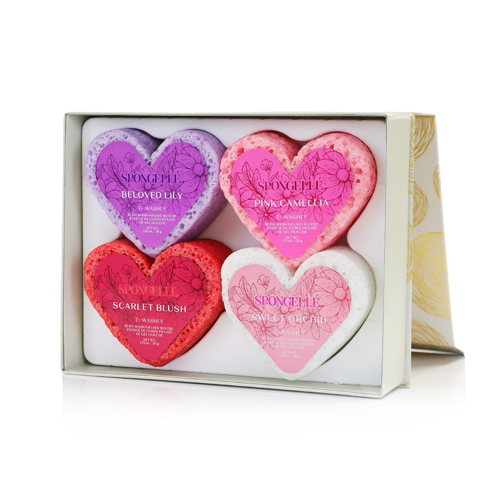 Introducing Spongellé’s Valentine’s Day Gift Set. These heart-shaped body wash infused buffers are designed to add a touch of love and fun to your daily cleansing routine. Infused with delightful fragrances, these buffers transform your shower into a heartwarming experience. Treat yourself or someone special to these charming buffers and spread the love this Valentine’s season! Gift set includes all four Valentine’s Day body buffers. Good for 7+ washes each.