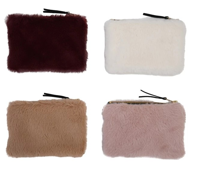 Soft faux fur exterior with a luxurious texture and stylish design; features a secure zip closure and an interior lining for added functionality. Measures 6-1/2″L x 4″W and is available in 4 versatile colors.