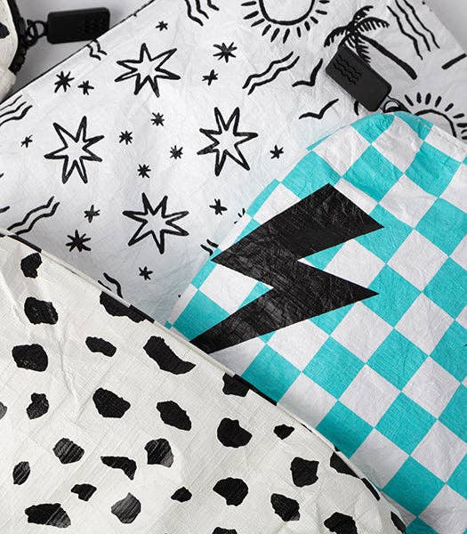 Local Beach Water Resistant Printed Pouch: Palm & Waves Small