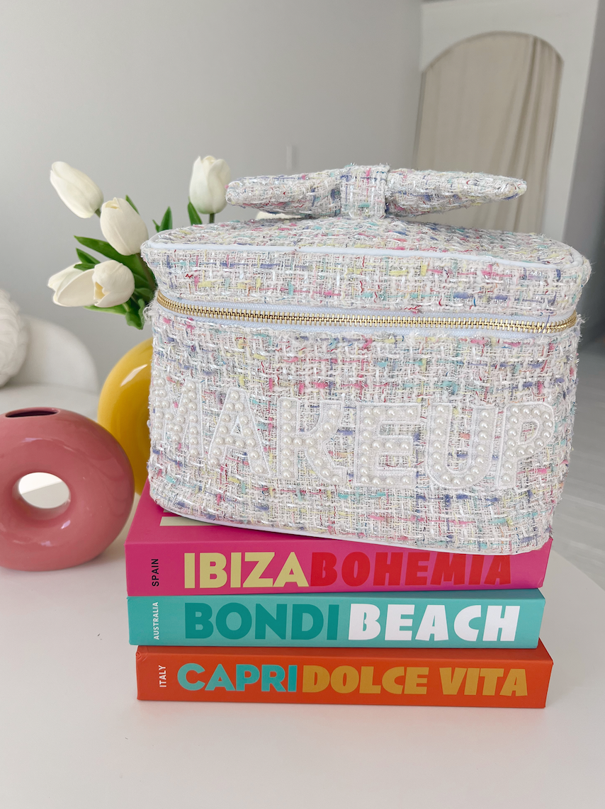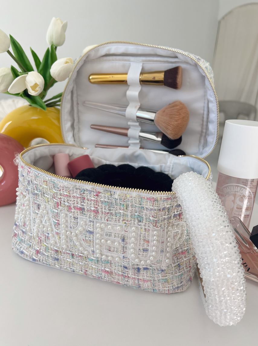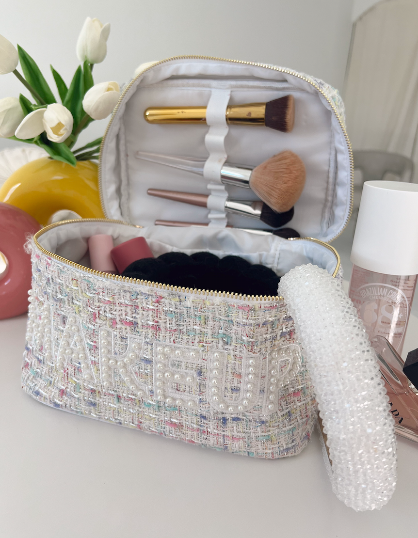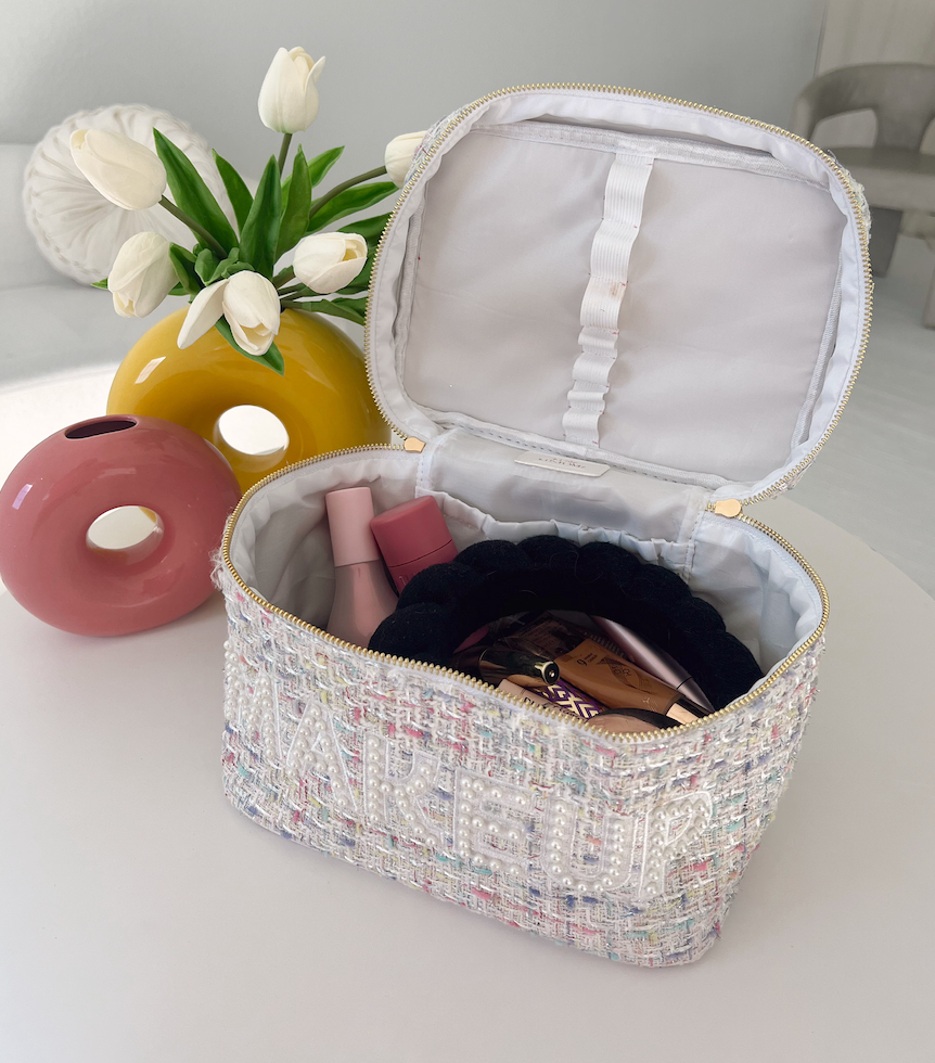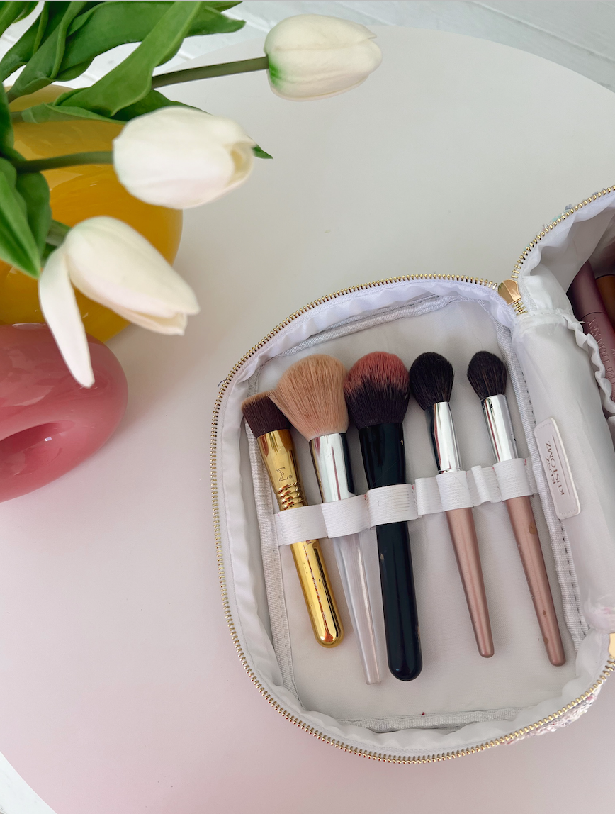 – Perfect train case for traveling and storing makeup/palettes, etc!