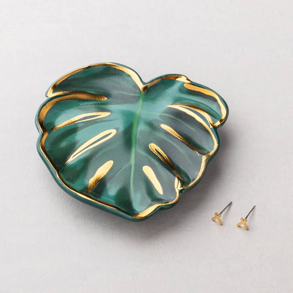 Jewelry Dish & Stud Earring Set – Leaf/Sage